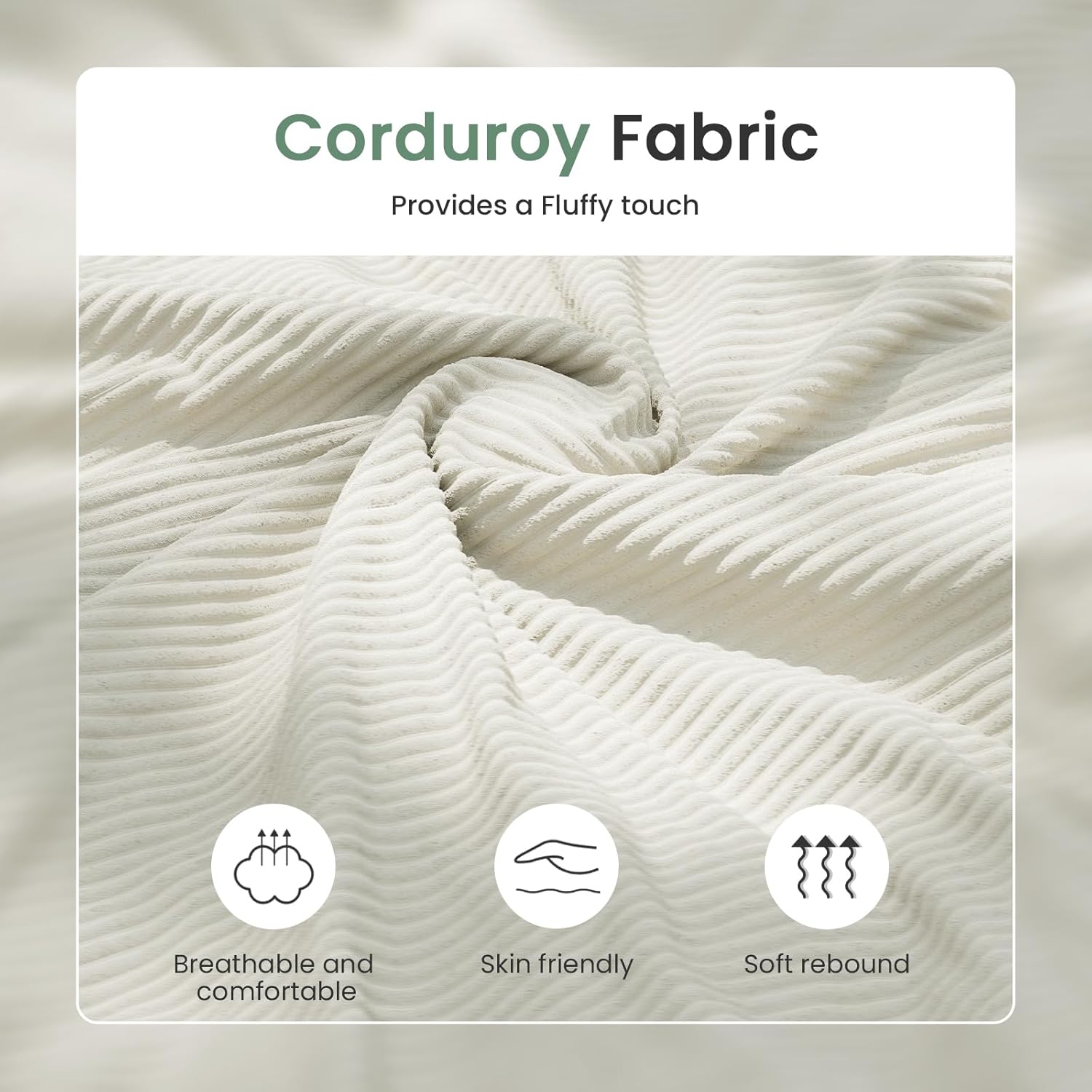 2 Pieces Corduroy Couch Set for Living Room, 5 Seats Cloud Sofa, Deep Seat Floor Couch for Bedroom, Futon Modern Sofa Bed, White Corduroy
