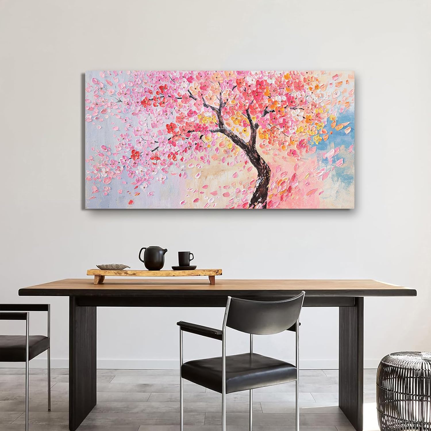 Canvas Wall Art Decor Artwork for Walls Tree of Life Wall Art for Living Room Blue Pink Wall Art Decor Vintage Tree Flower Wall Art Decoations Print Art Work for Home Office Wall Decor 20" X 40"