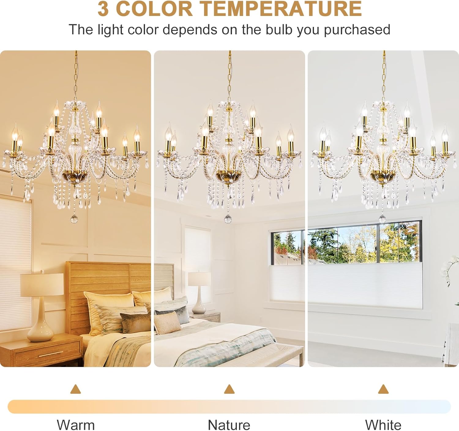 Modern Elegant 12 Lights K9 Crystal Glass Chandelier Golden Pendant Ceiling Lighting European Style for Dining Living Room Bedroom Transparent,12 E12 Bulbs Required