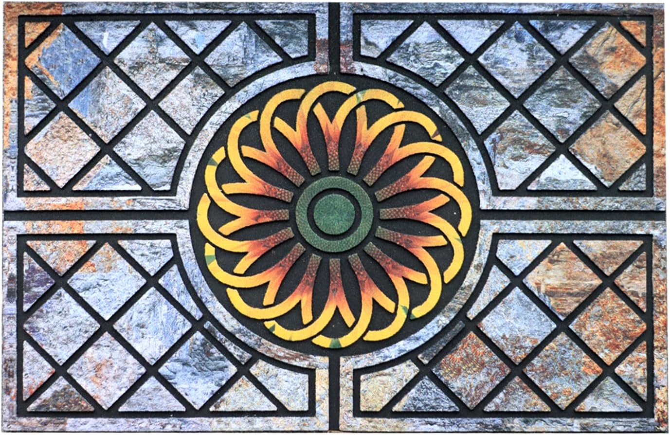 Door Mat Welcome Mat, Heavy Duty Door Mat 17.7 x 29.5 Inch Front Door Mat Rug Doormat for Outdoor Entrance Home Non-Slip Rubber Rug for Front Door, Outside, Entryway, Patio (Flower)