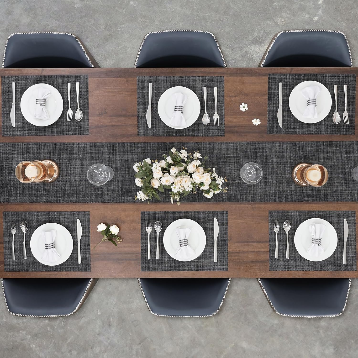 Myir JUN Placemats Set of 8, Vinyl Woven Placemats Place Mats Indoor Set of 8 Washable Table Mats Non-Slip Place mats for Dining Table (Dark Gray-Black, Set of 8)