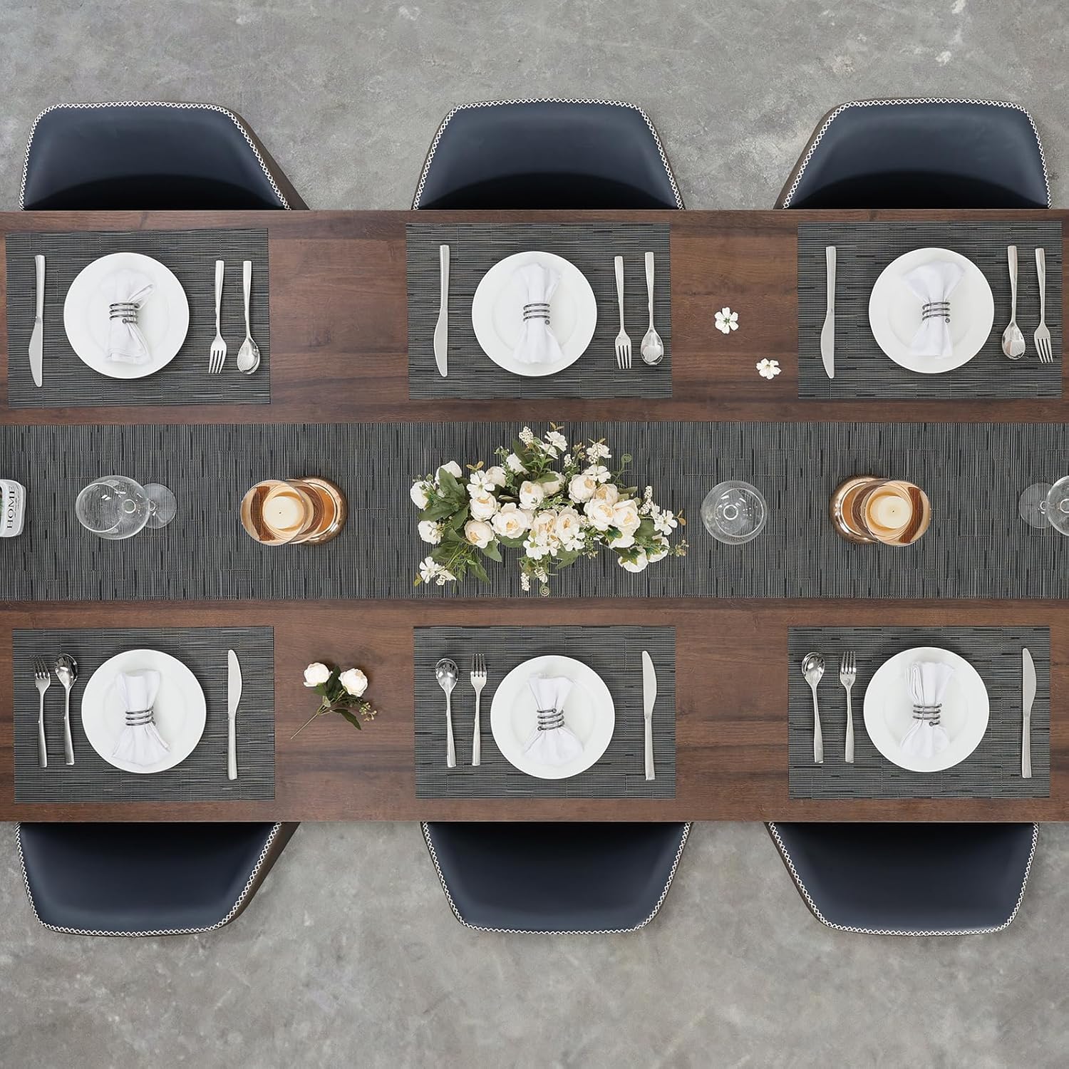 Myir JUN Placemats Set of 6, Vinyl Woven Placemats Place Mats Indoor Washable Table Mats Non-Slip Place mats for Dining Table (Black-Gray, Set of 6)