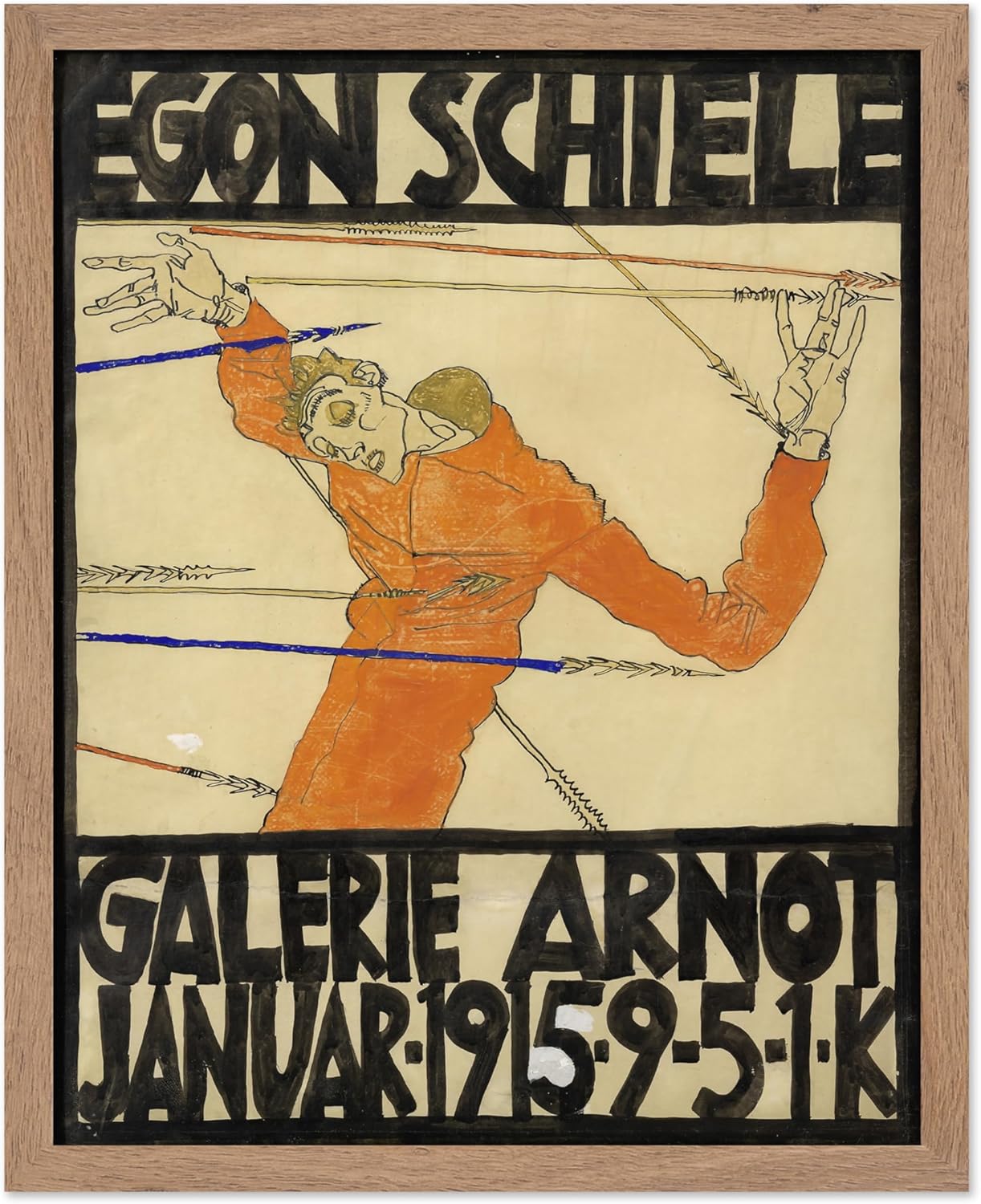 Poster Master Vintage Painting Poster - Retro Expressionism Print - Self Portrait as the Martyred St Sebastian - Gift for Artist, Friend - Wall Decor for Home, Office, 8x10 Beige Framed