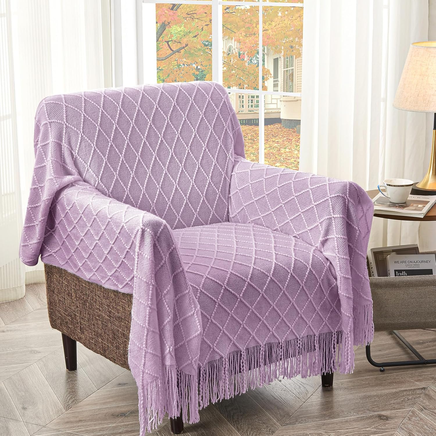 - 【GIFT IDEAS】: Special knitted diamond patterns add a unique accent to your room and people draping it as a shawl. Very suitable for tasteful homeowners. Throw blanket for women, classic but not too tacky as a housewarming gift. Tips: Due to different lighting, display settings, or resolutions, the difference in color happens. We are dying to show the color. To do so, one of the images shows the color difference in different lighting. Hope these instructions would help you to buy a throw.