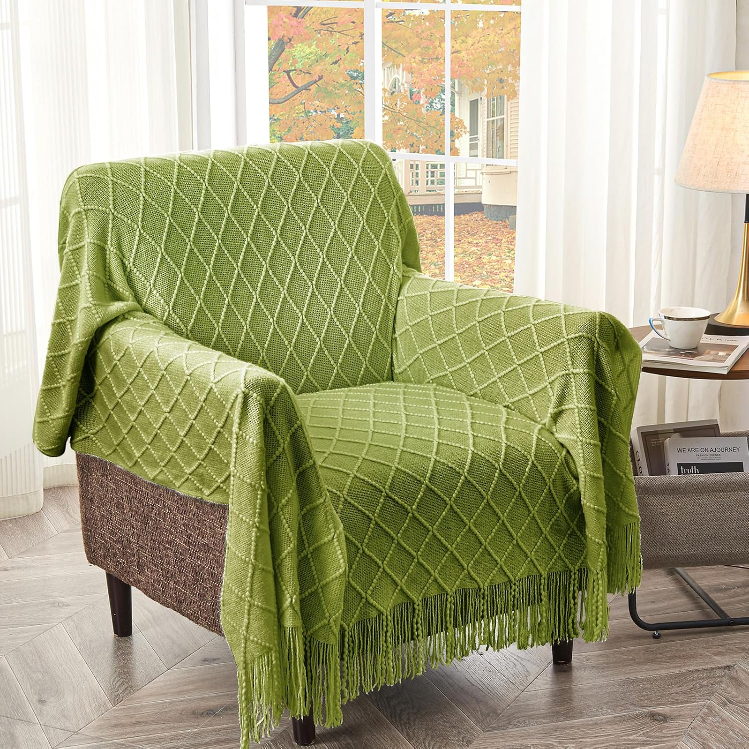 - 【GIFT IDEAS】: Special knitted diamond patterns add a unique accent to your room and people draping it as a shawl. Very suitable for tasteful homeowners. Throw blanket for women, classic but not too tacky as a housewarming gift. Tips: Due to different lighting, display settings, or resolutions, the difference in color happens. We are dying to show the color. To do so, one of the images shows the color difference in different lighting. Hope these instructions would help you to buy a throw.
