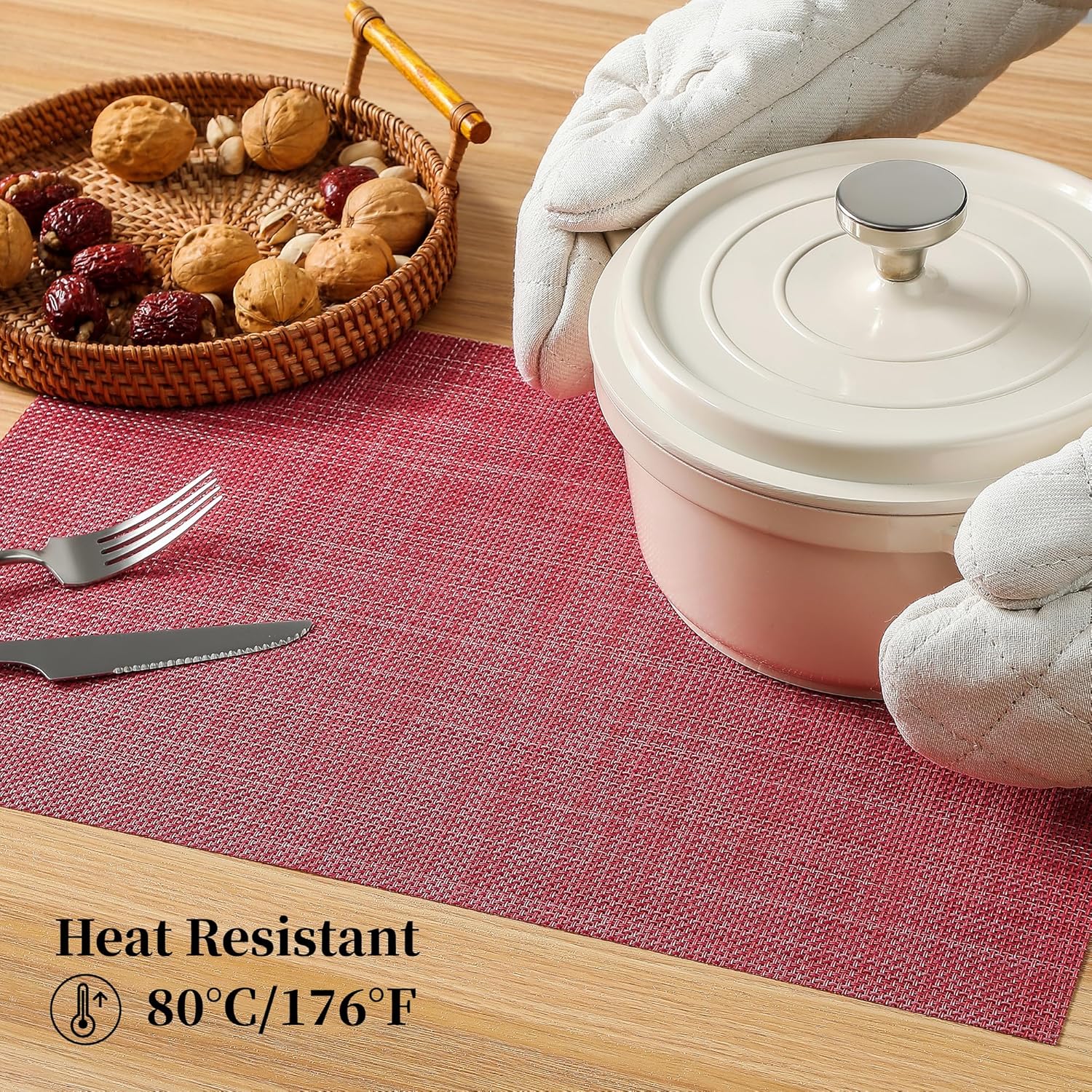 Leetaltree Red Placemats Set of 8 - Heat Resistant Non-Slip Place mats for Dining Table, Washable Durable PVC Vinyl Woven Table Mats(Red, 8)