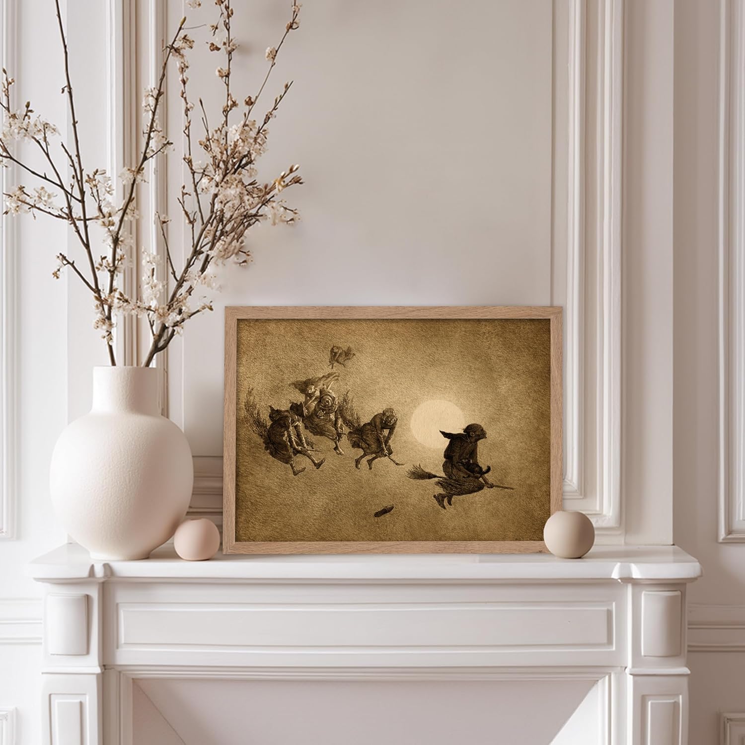 Poster Master Vintage William Holbrook Beard Poster - Retro Occult Print - Gift for Gothic, Horror Fan - The Witches Ride, Pagan, Goth, Magic - Wall Decor for Bedroom, Dorm, 8x10 Beige Framed