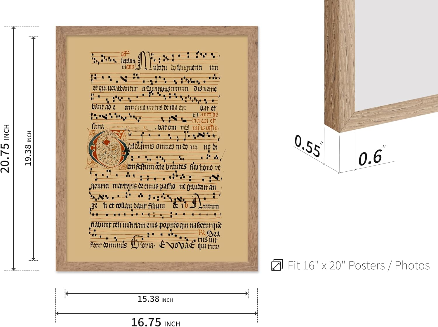 Poster Master Vintage Hymnal Poster - Retro Music Print - Gift for Artist, Friend - Graduale Aboense, Gregorian Chant Manuscript, Score - Wall Decor for Living Room, Bedroom, 16x20 Beige Framed