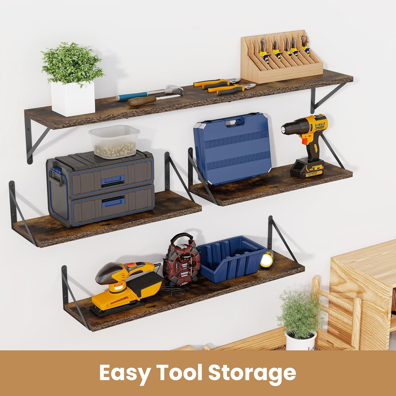 - ăSuitable for Various OccasionsăThese hanging bookshelves are ideal decorations for any room--the floating wooden shelves are perfect for various rooms such as bathrooms,kitchens,living rooms,game rooms,etc.,so they are the best gifts for birthdays or other occasions. These heavy-duty wall-mounted bookshelves can be used for closet organization,storage,and garage organization.