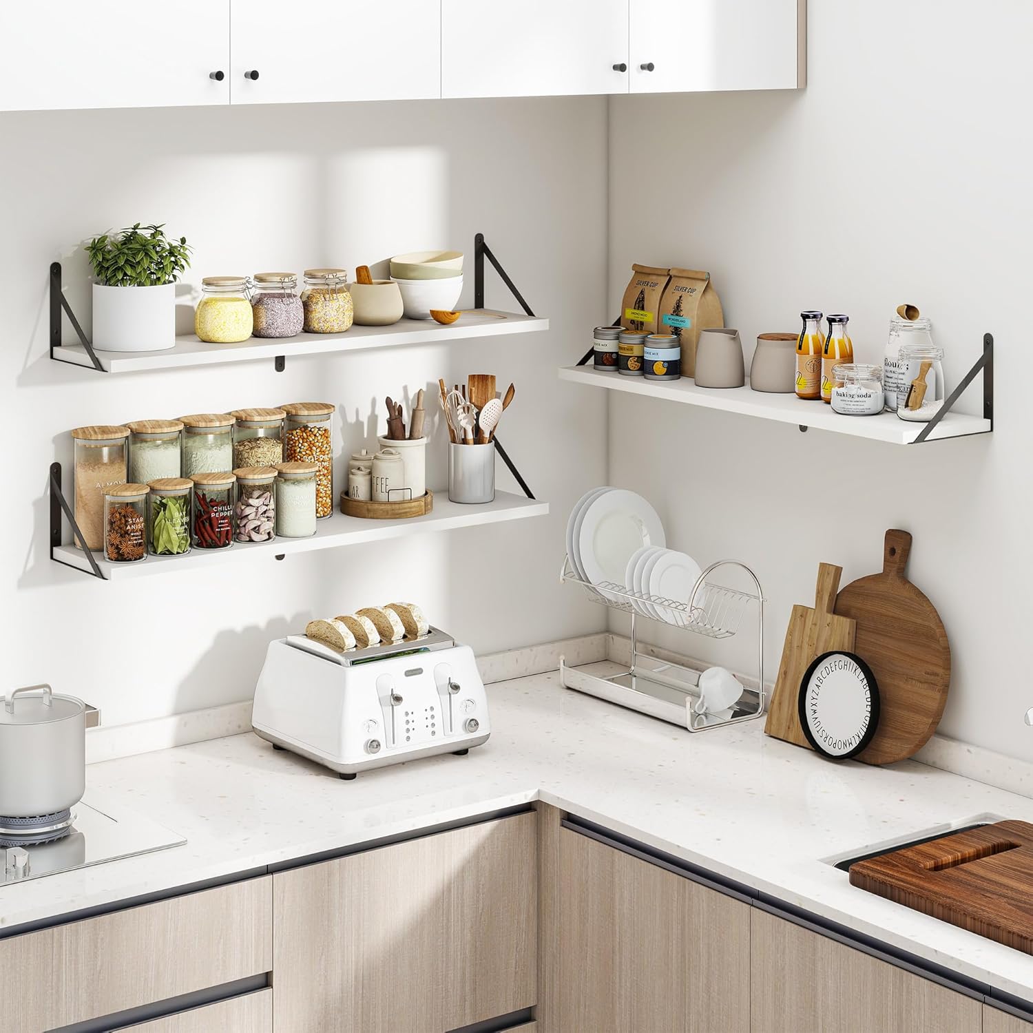 - ăSuitable for Various OccasionsăThese hanging bookshelves are ideal decorations for any room--the floating wooden shelves are perfect for various rooms such as bathrooms,kitchens,living rooms,game rooms,etc.,so they are the best gifts for birthdays or other occasions. These heavy-duty wall-mounted bookshelves can be used for closet organization,storage,and garage organization.