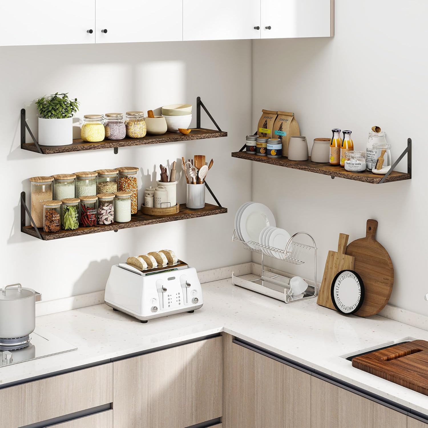 Heimlove 36 Inch Floating Bookshelves Set of 3,Heavy Duty Wall Mounted Bookshelves,Rustic Brown Wall Bookshelf for Living Room,Bedroom,Kitchen,Laundry Room Storage & Decor