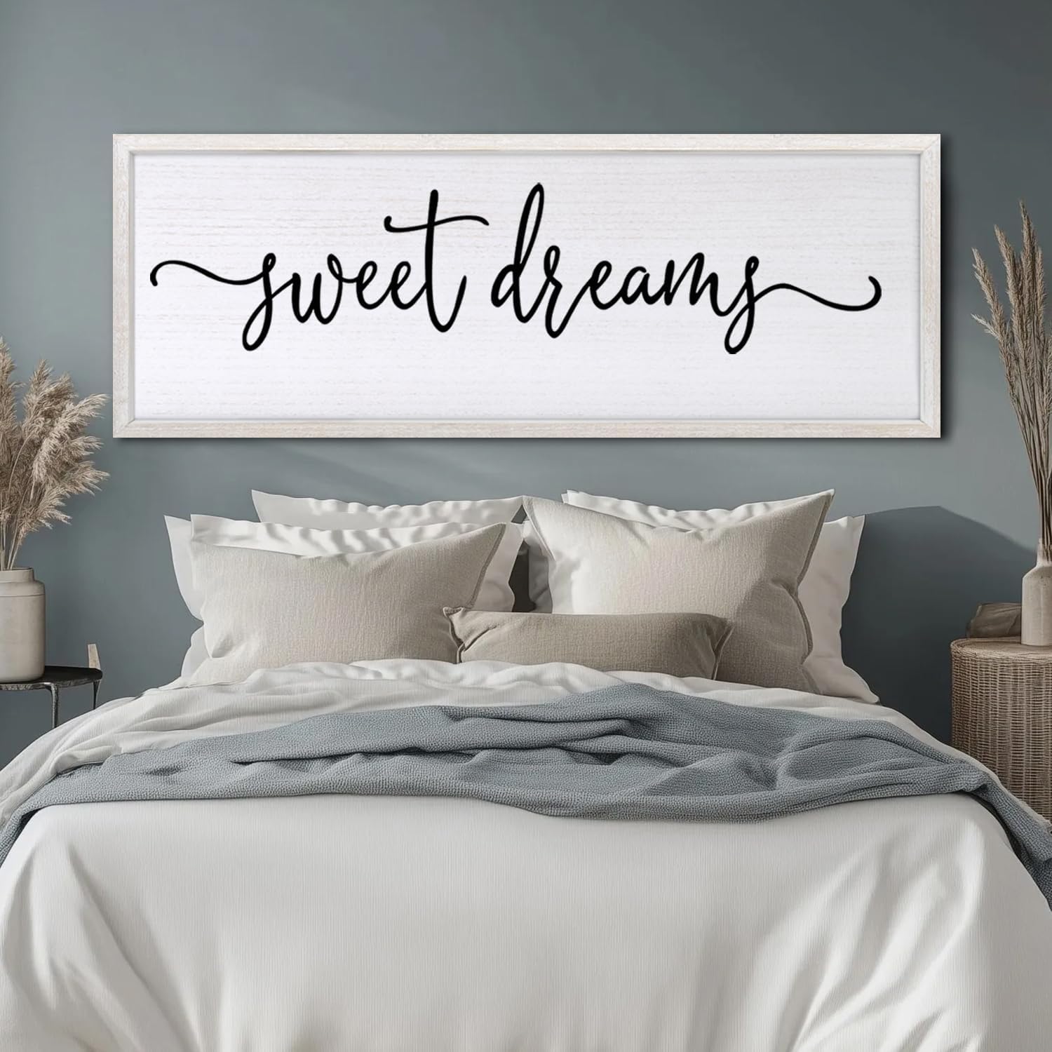 Sweet Dreams Over Bed Wall Decor 32"×12" for Master Bedroom Above Bed Wood Framed Wall Art Sign (White)