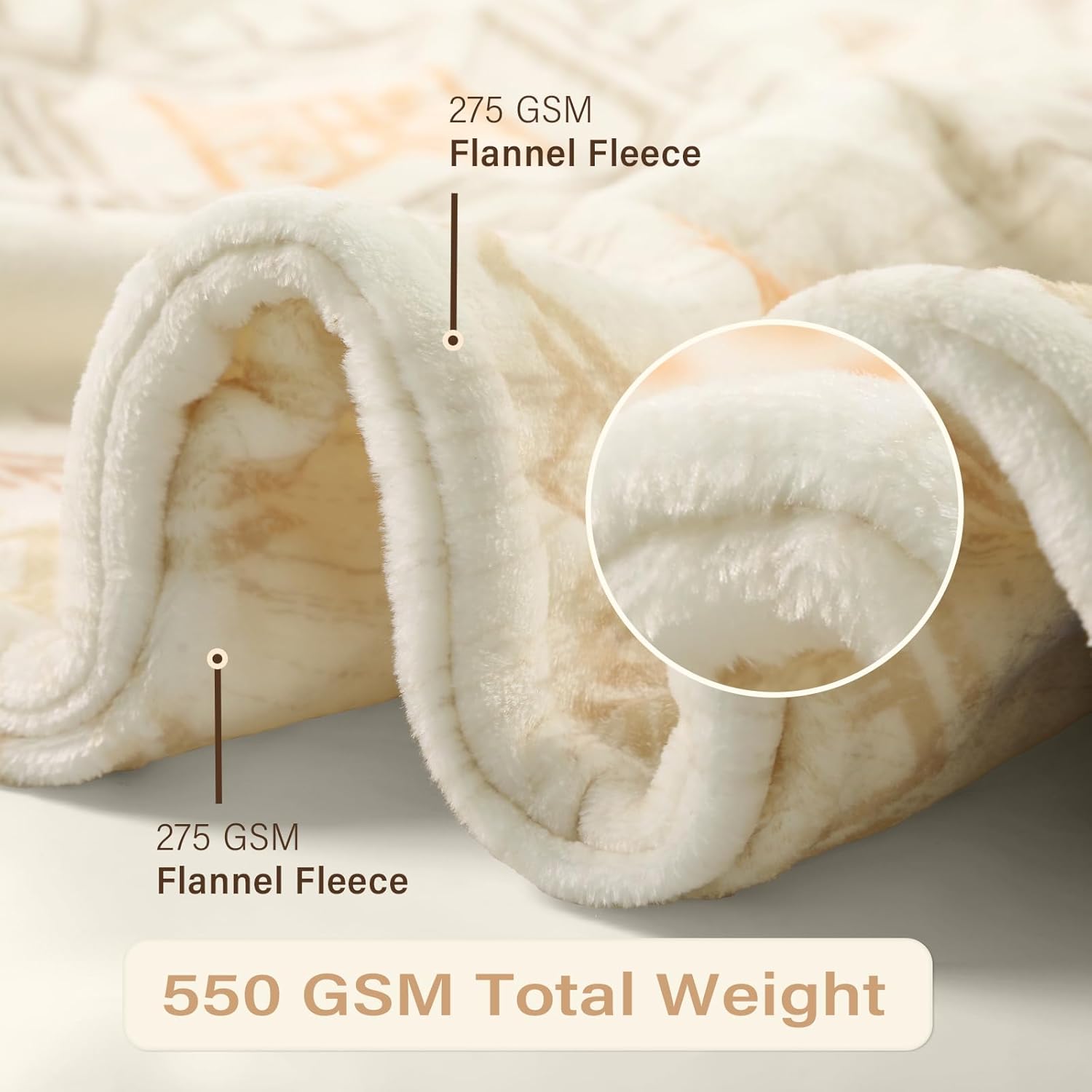 - [Plush Warmth Without Bulk] 550 GSM high-density weave, 2.4 lbs (50"x60"),delivers 30% warmer than standard fleece blankets, traps heat efficiently.Let you Stay toasty in cold nights or chilly living rooms