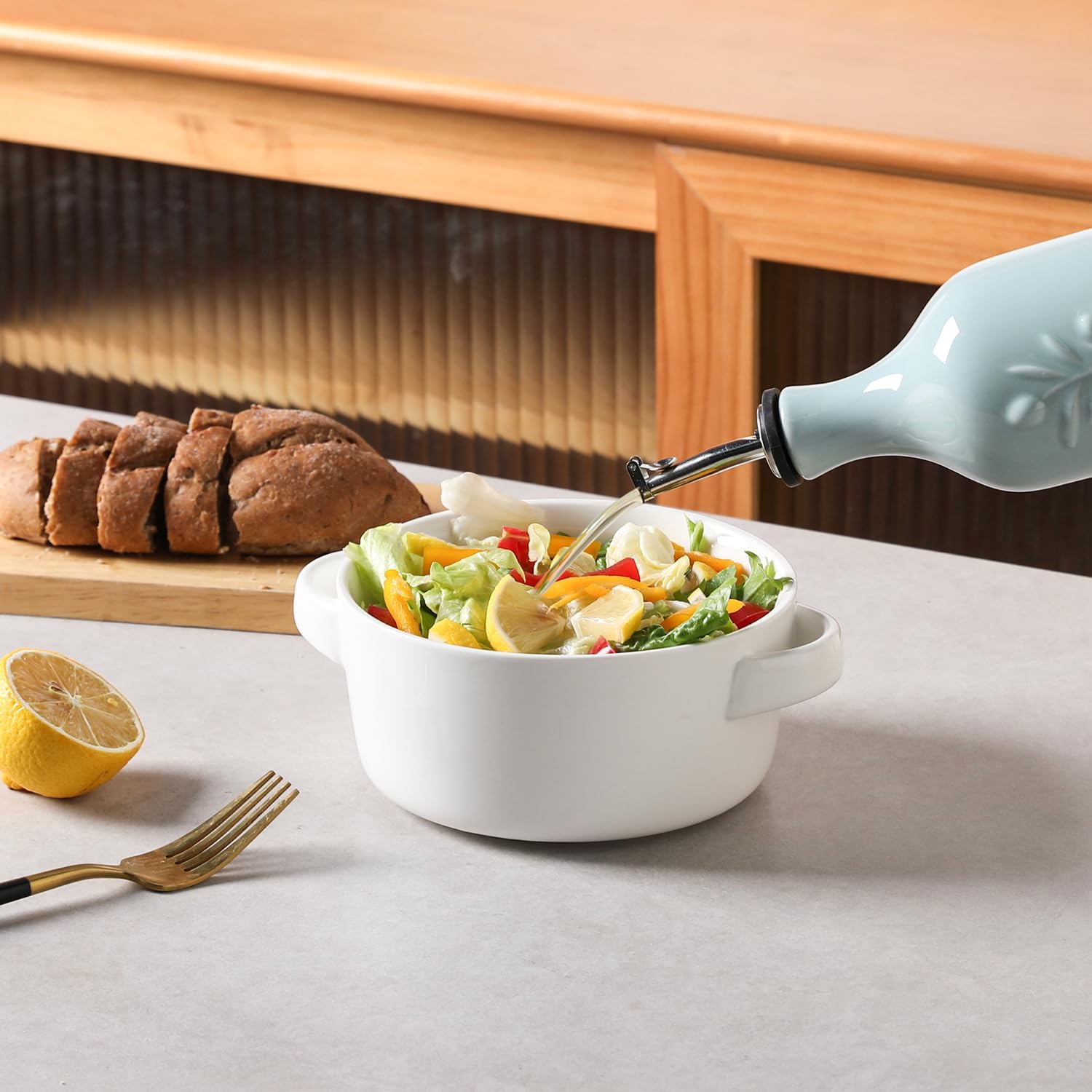 - Durable and Precise Pouring Control - The olive oil bottle fired at high temperatures, to form a smooth glazed surface, strength and durability. The carefully designed spout that allows for easy pouring without any messy drips or spills.