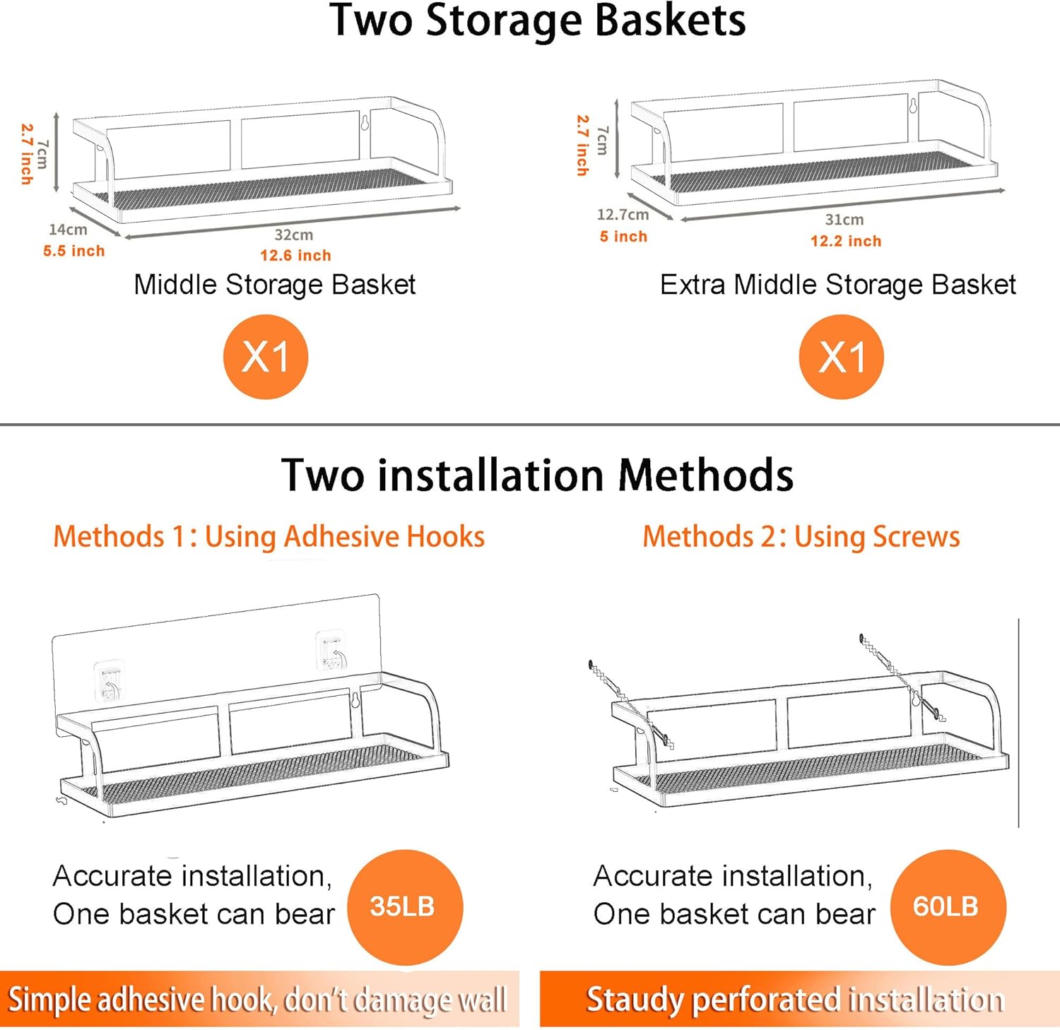 PUSDON Metal Wall Hanging Basket 2 Packs DIY Suitable for Multiple Scenes - Middle Silver Grey Hollowout