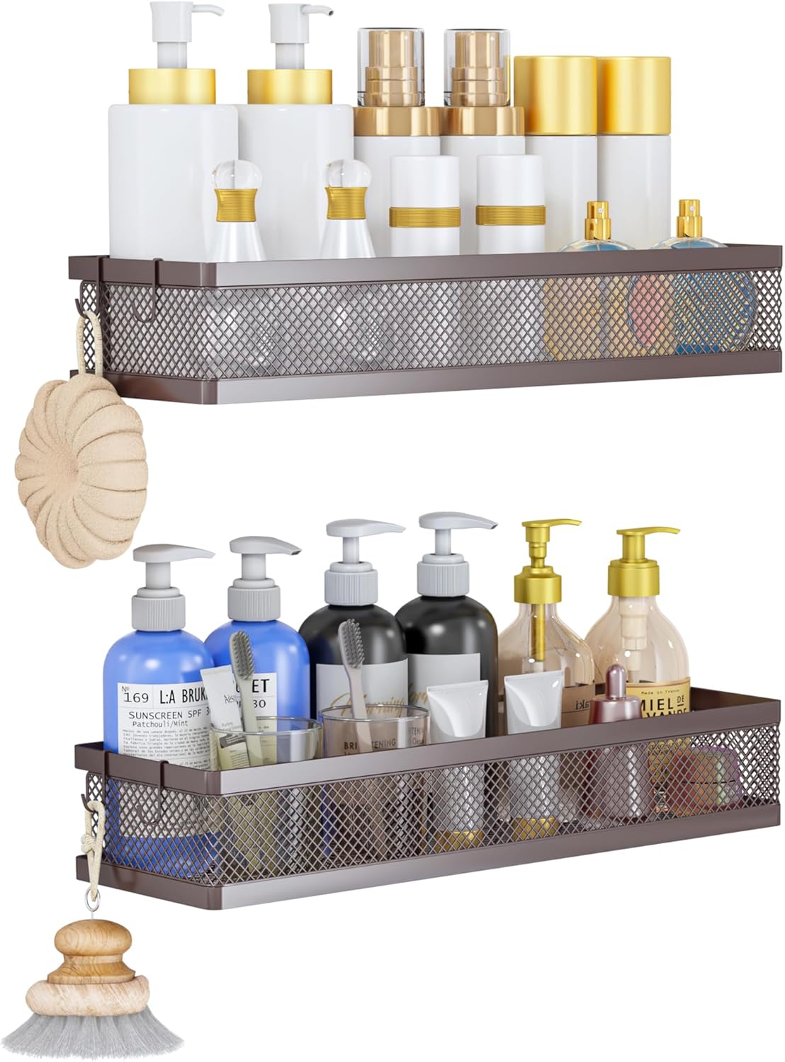 - Included Components : 2 baskets, 2 traceless sticker, 4 hooks, 4 screws, 4 wall stoppers