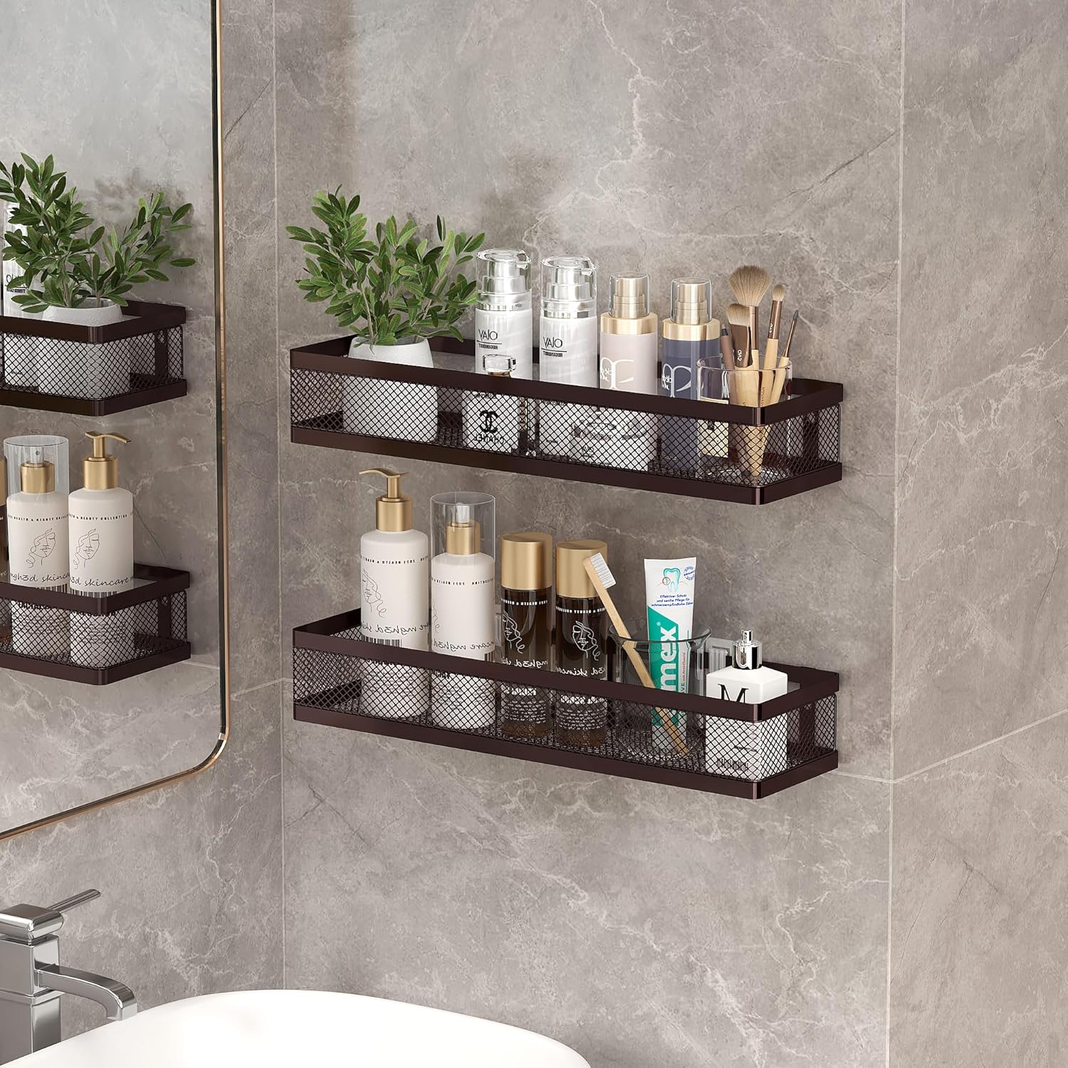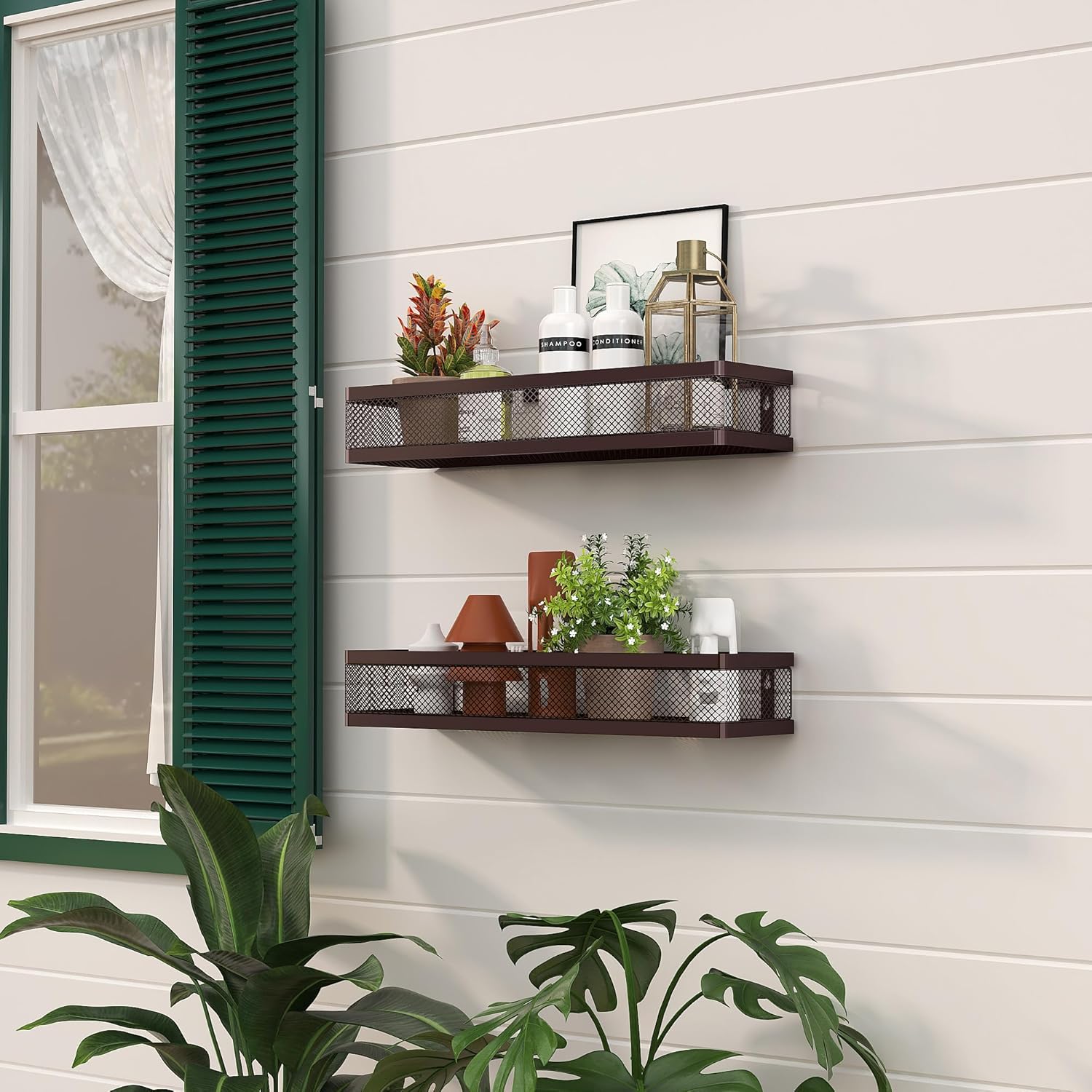 PUSDON Metal Wall Hanging Basket 2 Packs DIY Suitable for Multiple Scenes - Large Bronze Netting