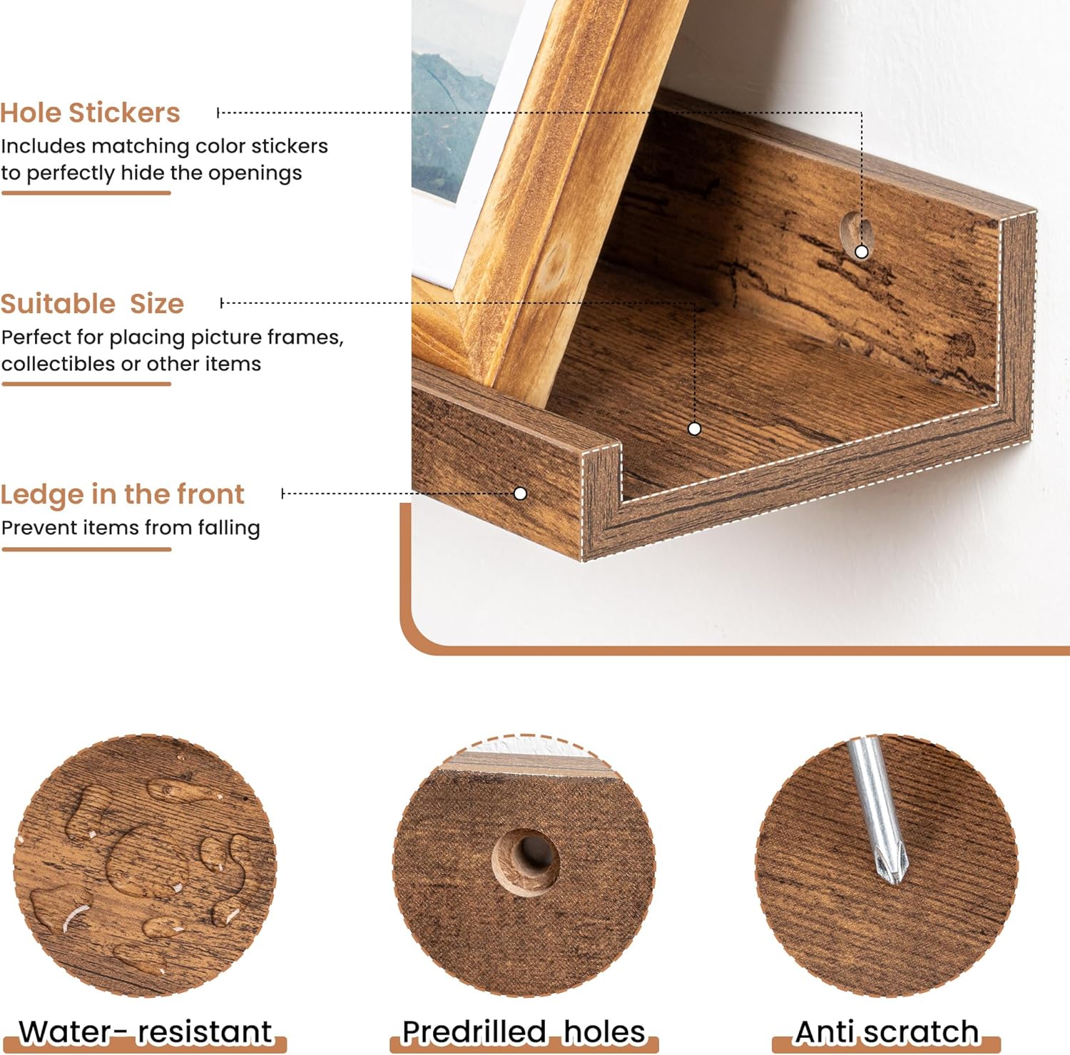 - Enhanced Stability Design: Featuring a secure lip at the front, these floating shelves prevent items from slipping or falling, confidently supporting up to 42 lbs, making these MDF wood shelves ideal for showcasing cherished items.