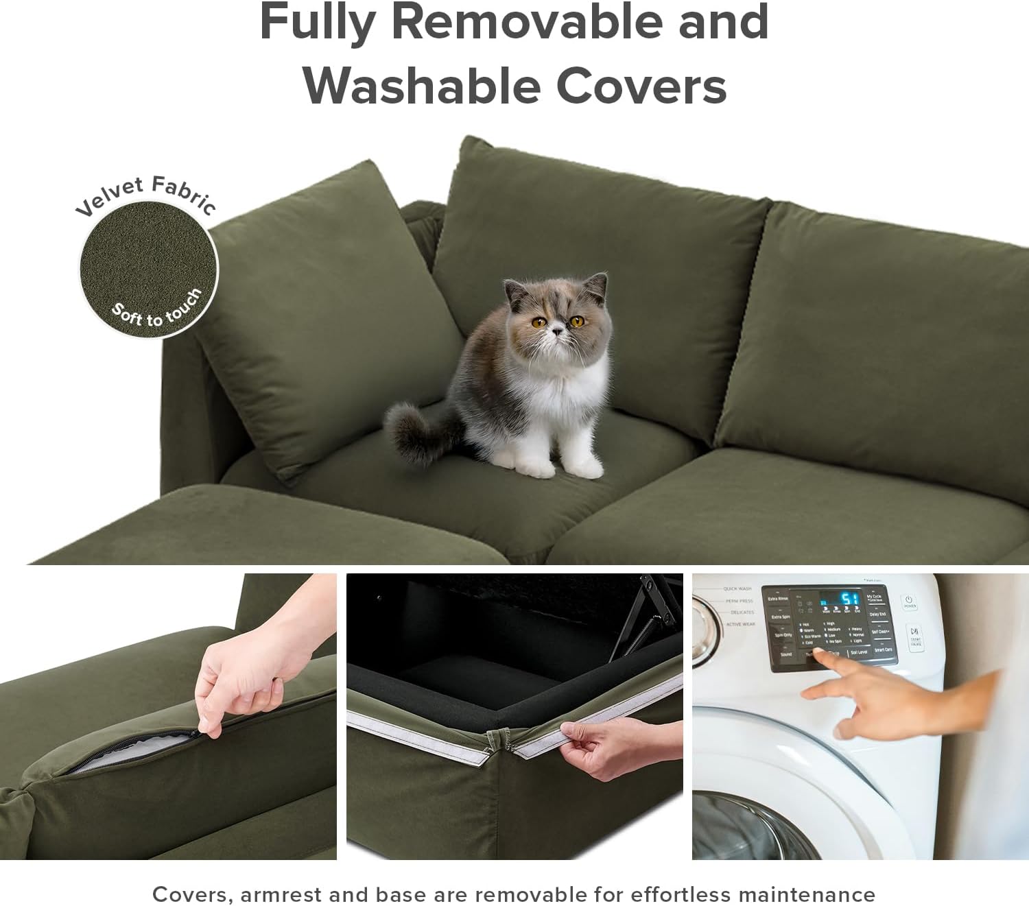 mopio Oversized Modular Sectional Sofa with Fully Removable Covers and Storage, Convertible U, L-Shaped and Sleeper Sectional, Modern Couches with Ottoman Chaise (Olive Green Velvet, Loveseat)