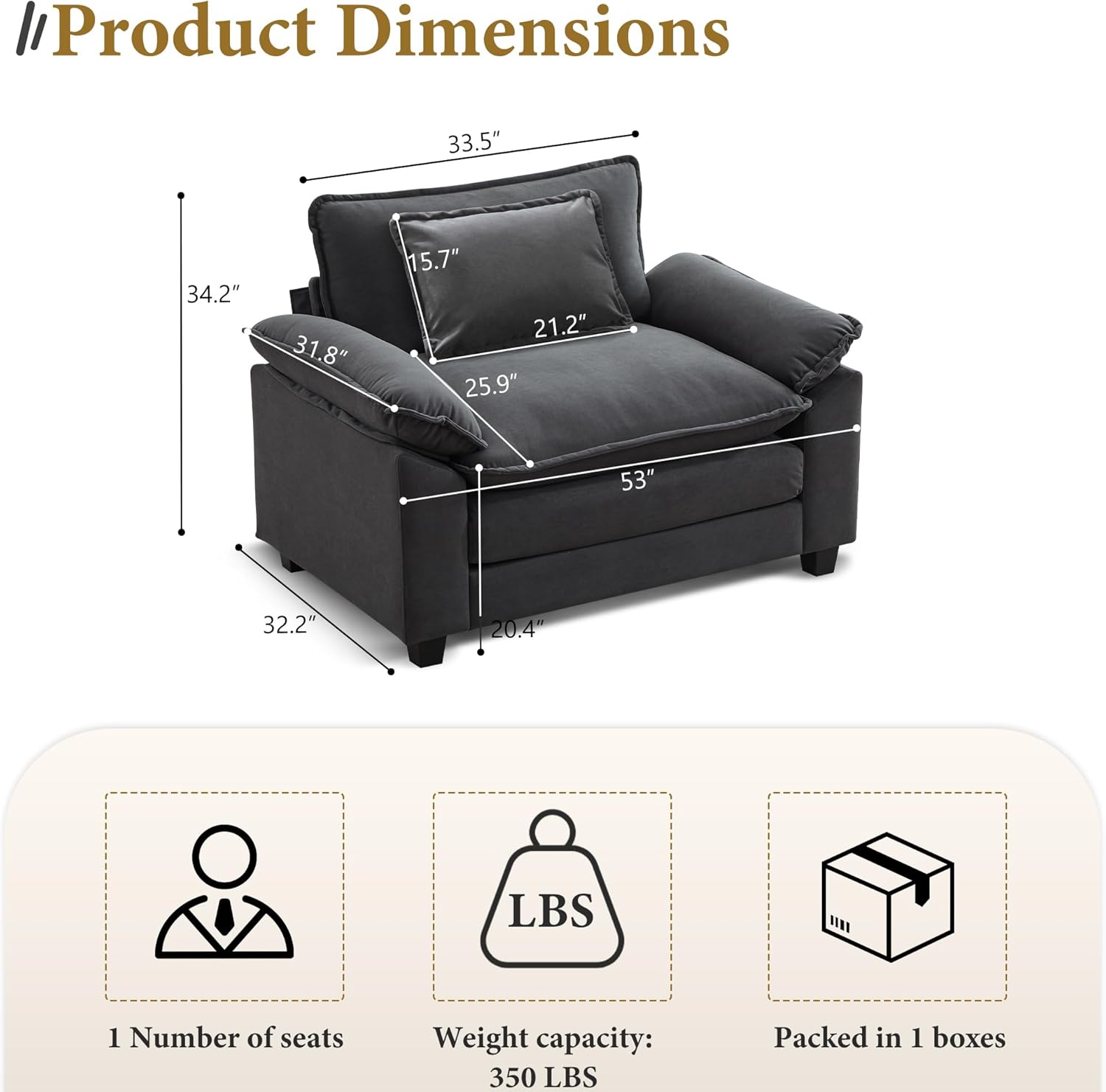 URRED Modular Sectional Sofa Comfy Cloud Couch, Modern Velvet Sofa Sleeper Deep Seat Couches with Ottoman/Pillows for Living Room (Dark Gray, 53'')