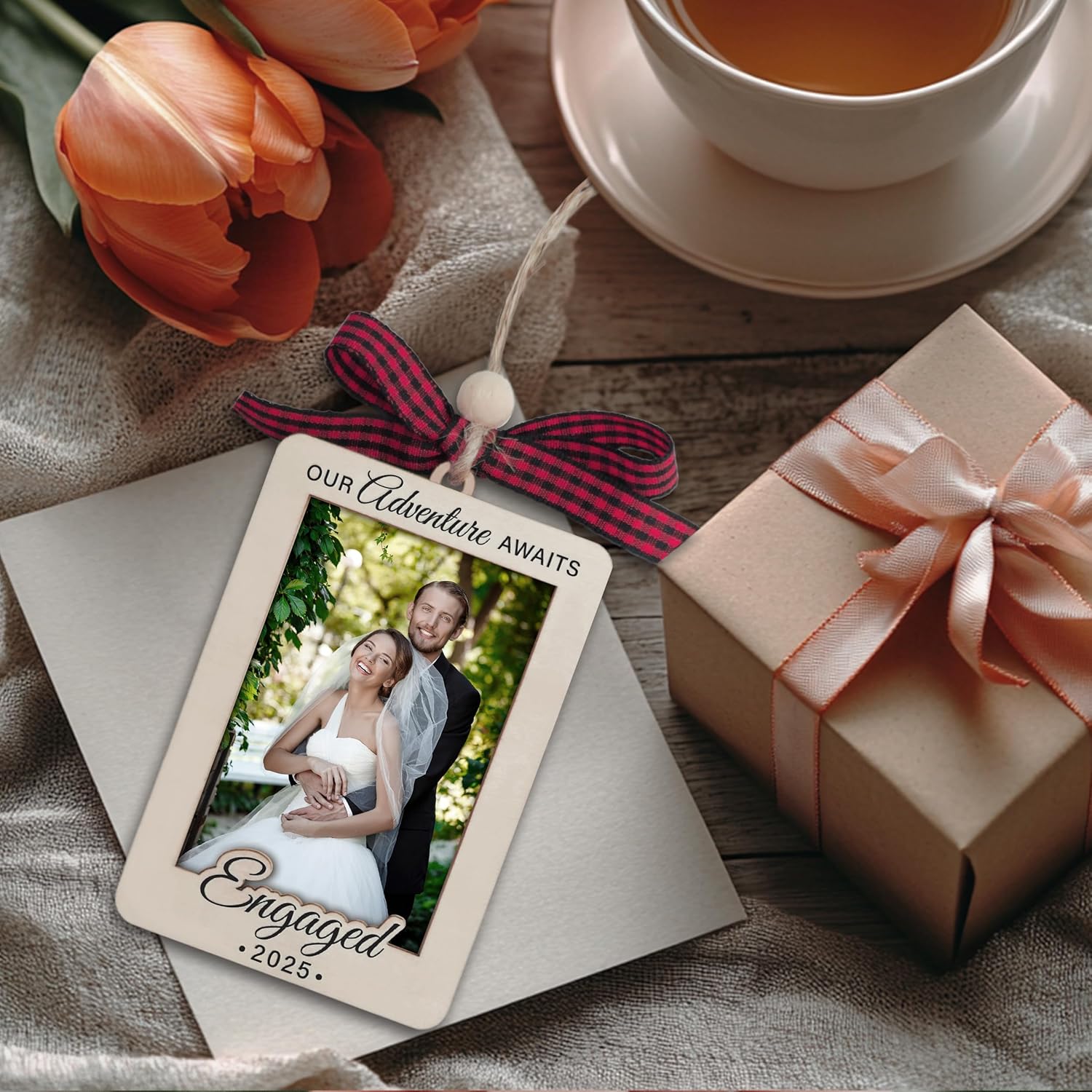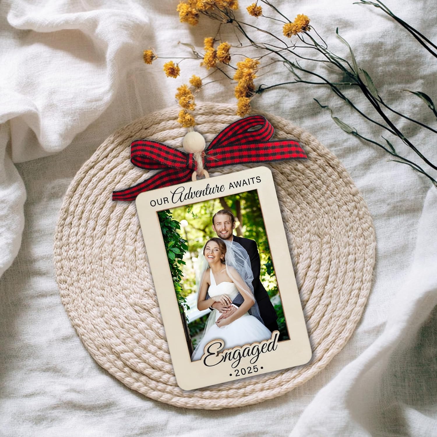 Christmas Photo Frame Ornament, 2025 Ornament, Wooden Picture Frame Ornaments With Hanging String (2025 Engaged)