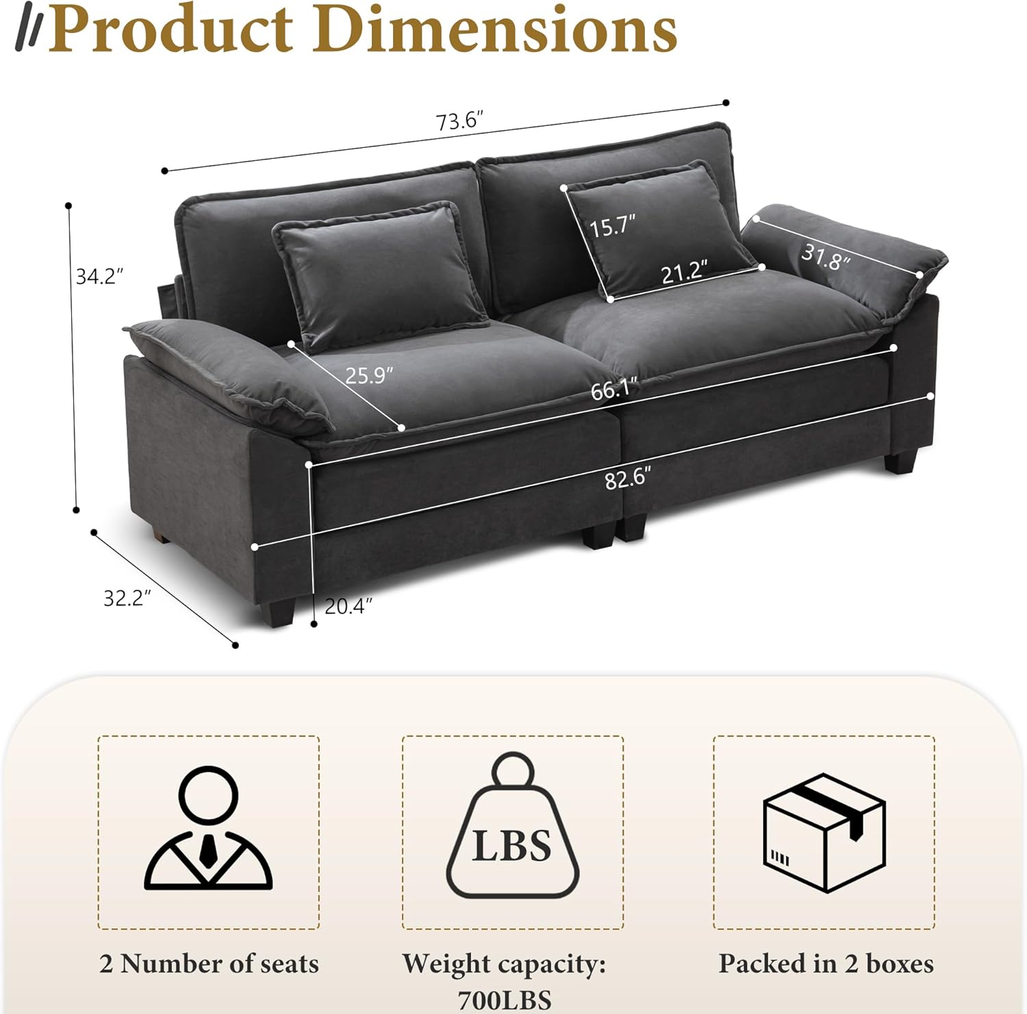 URRED Modular Sectional Sofa Comfy Cloud Couch, Modern Velvet Sofa Sleeper Deep Seat Couches with Ottoman/Pillows for Living Room (Dark Gray, 82.6'')