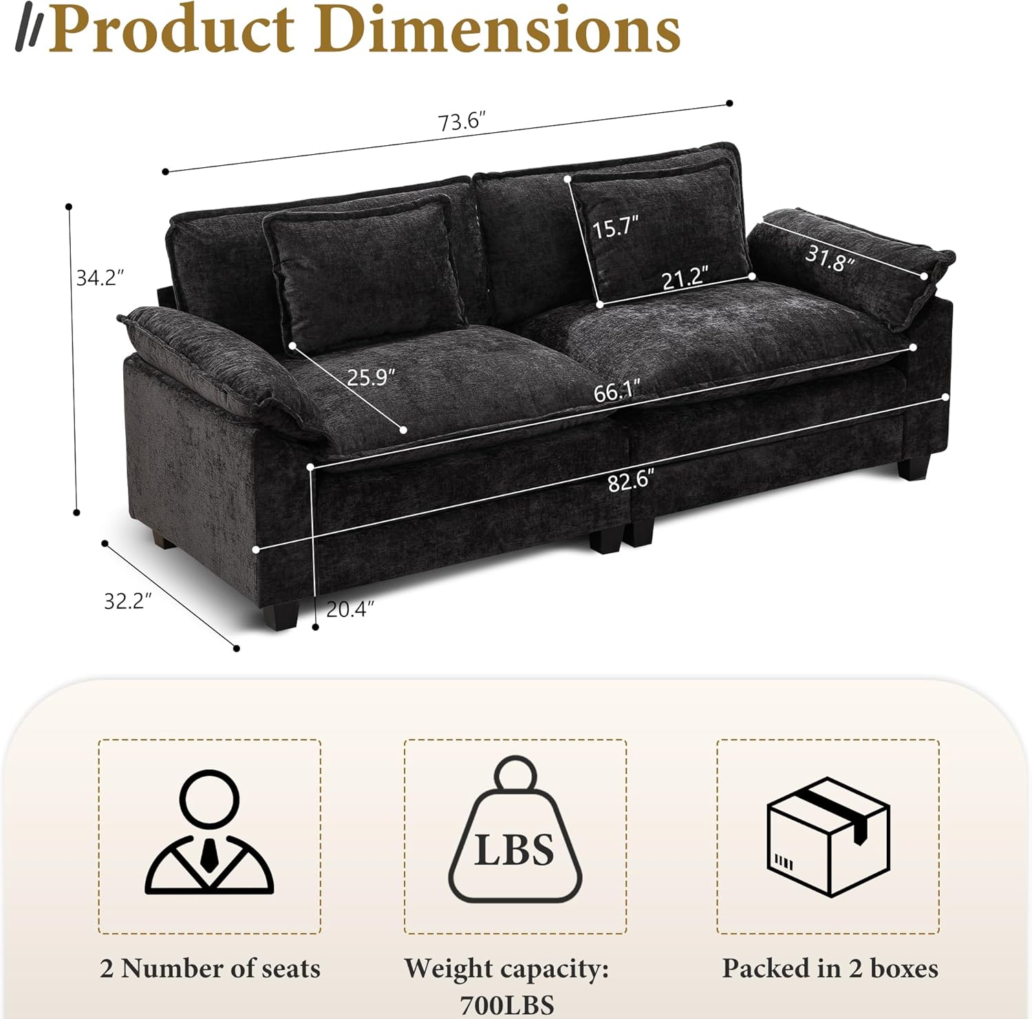 URRED Modular Sectional Sofa Comfy Cloud Couch, Modern Chenille Sofa Sleeper Deep Seat Couches with Ottoman/Pillows for Living Room (Black, 82.6'')