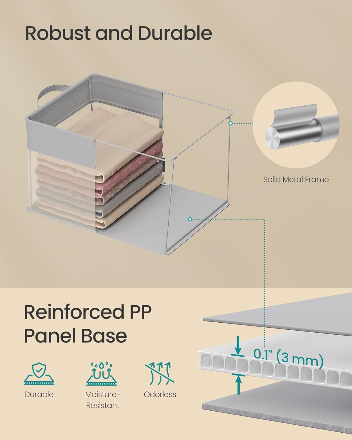 - Extremely Durable, Odorless & Moisture-Resistant: Constructed from dense nylon mesh and premium Oxford fabric, each box is reinforced with a thicker PP base and a sturdy metal frame for enhanced durability