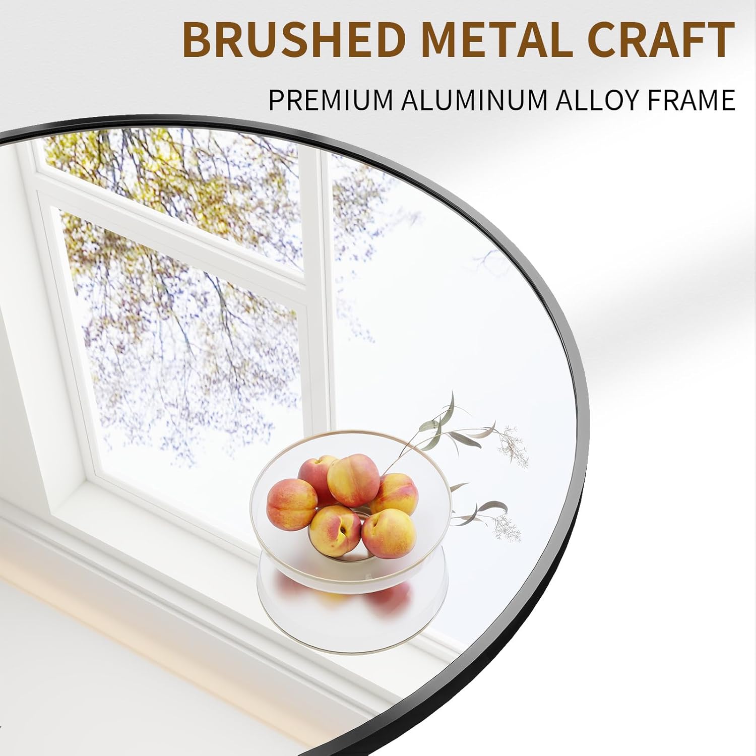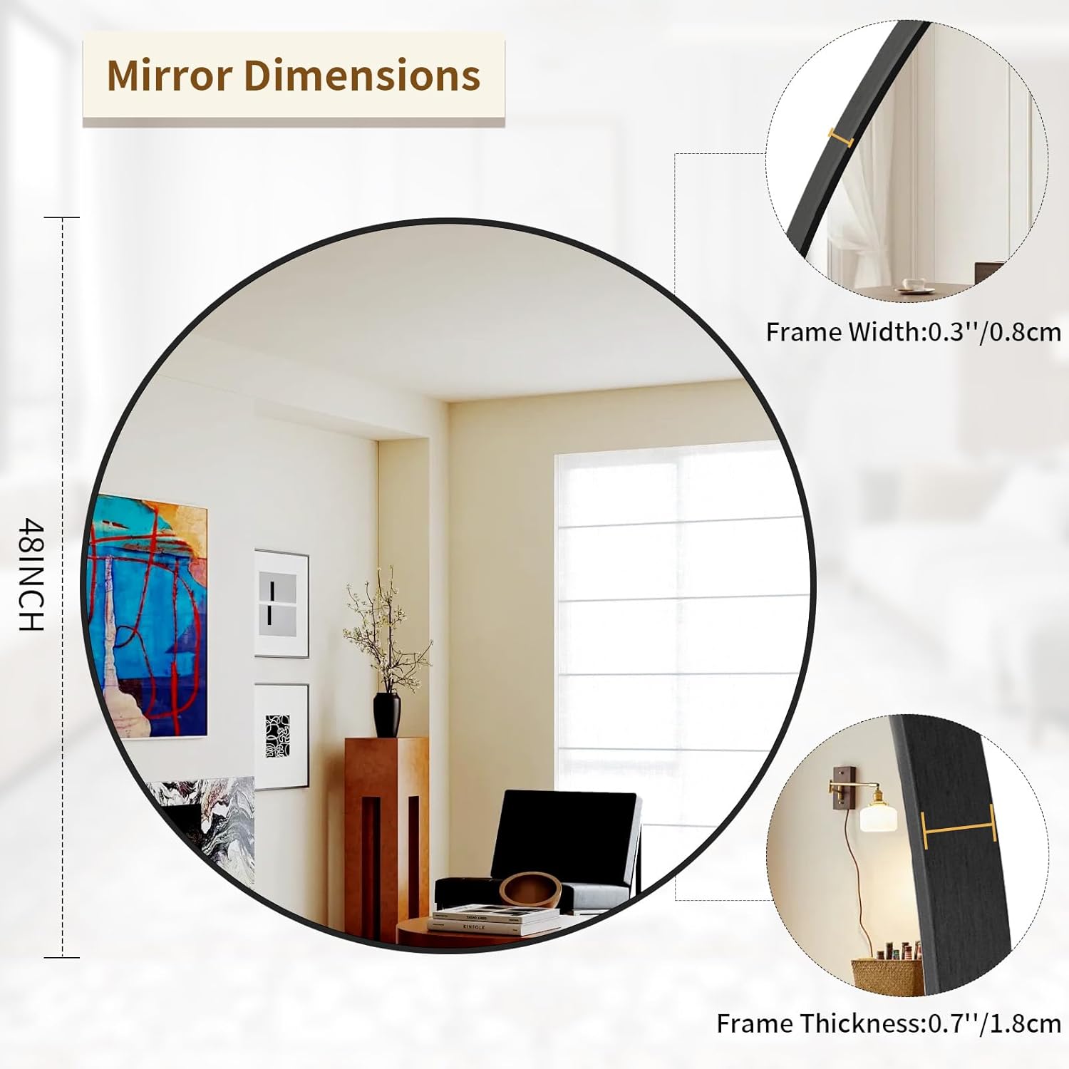 - Modern Brushed Frame Design: 48-inch black circle mirror is crafted of an aluminum alloy metal sleek frame, making it ideal for bathroom mirror, entrance mirror, vanity mirror, living room mirror