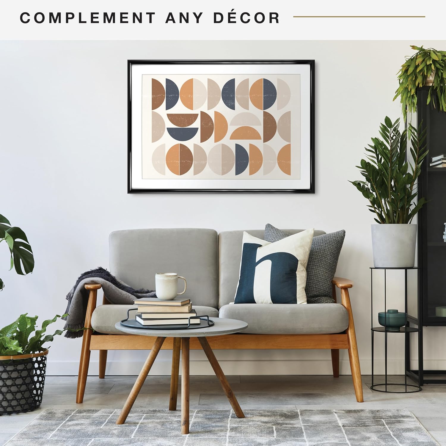 - DIMENSIONS: Each large wall picture frame features a sleek black profile & holds a 24 x 34-inch poster without the mat, or use the included mat for 20 x 30-inch display.
