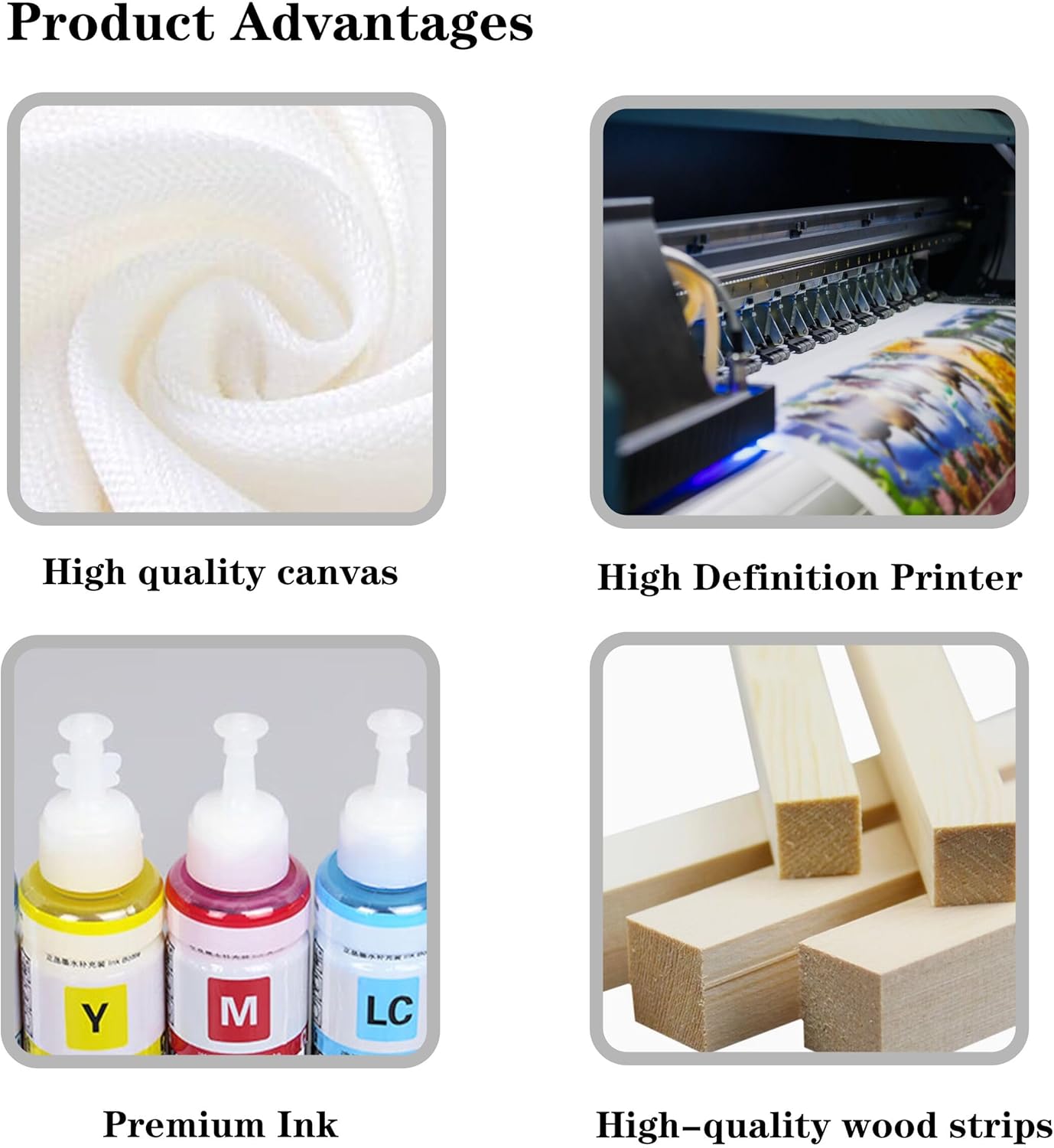 - HD Printing: Our HD printing has stunning visual effects. Every stroke and detail is clearly reproduced, ensuring exceptional clarity and realistic artistry on canvas.