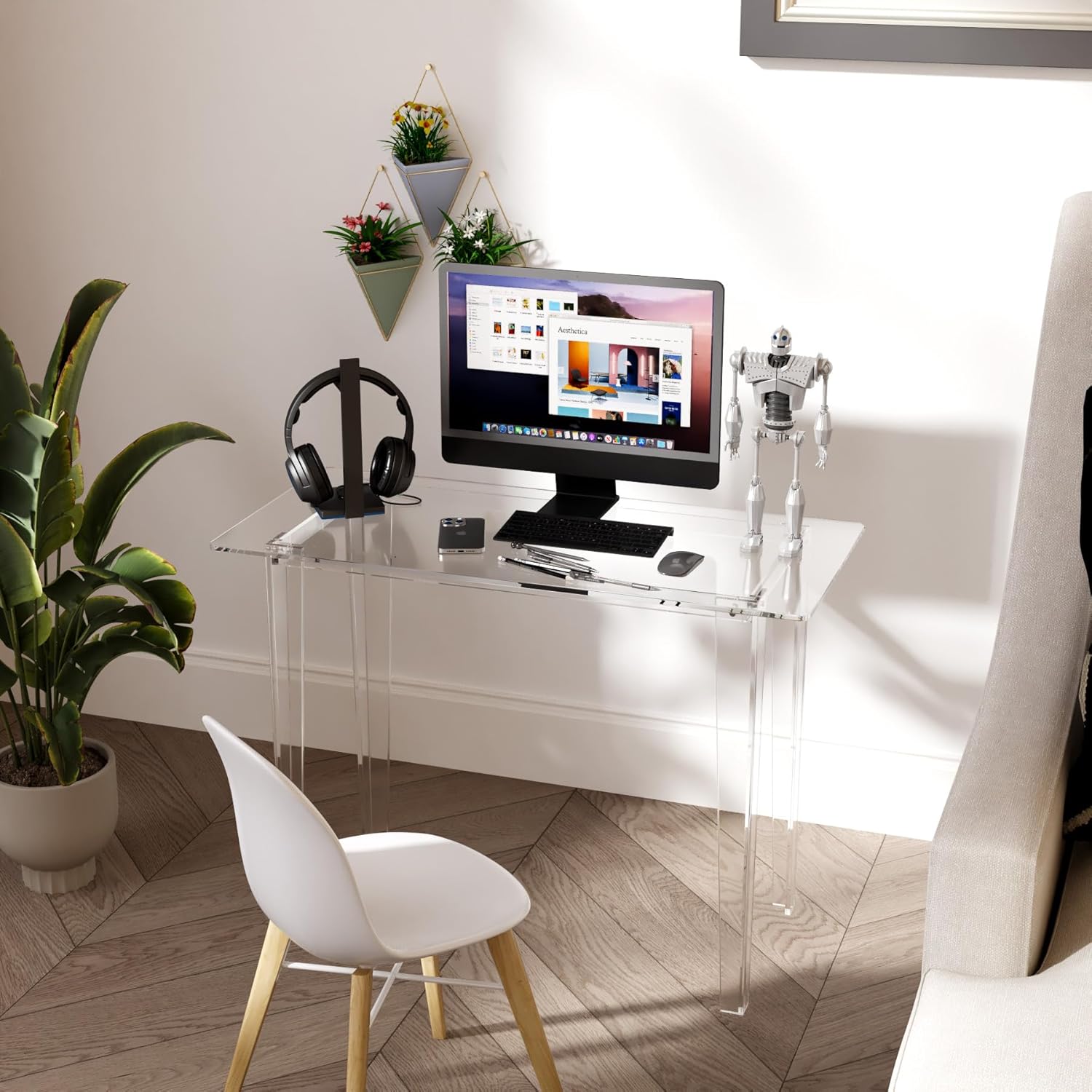 - 【Stable Acrylic Computer Desk】 Reinforced edge and base design ensures stable support - keeps laptop/PC, books or cosmetics stable without shaking.