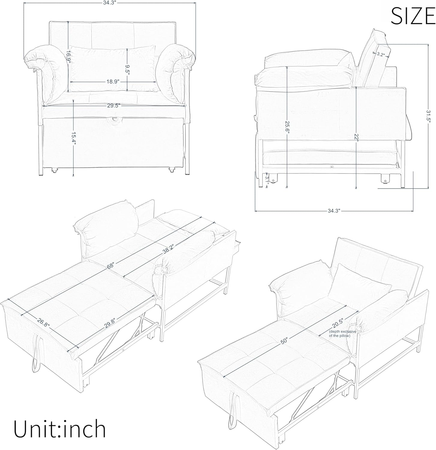 - Versatile 3-in-1 Design: This convertible sleeper chair bed effortlessly changes from a stylish armchair into a cozy twin-size bed, making it perfect for compact areas like living rooms, guest rooms, or home offices. It easily adjusts to your requirements for relaxation or accommodating overnight visitors.