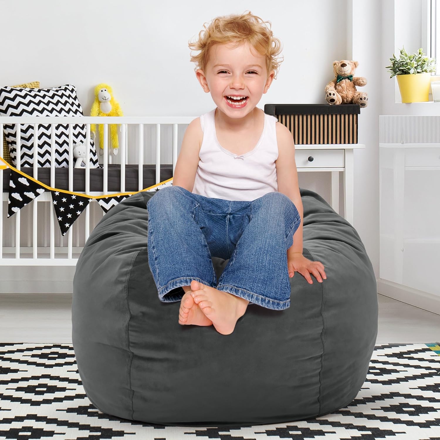 - Thoughtful Details: The bean bag chair comes with a carrying handle, making it easy for your little one to move it from room to room. Moreover, the small bean bag chair features a side pocket where your litte one can store their own belongings.
