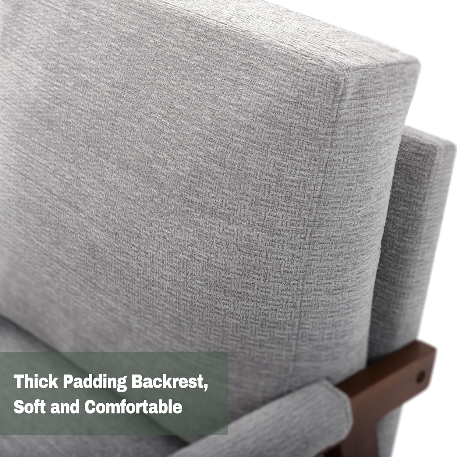 Modern Accent Chair for Living Room Mid Century Arm Chair Upholstered Bedroom Chair Comfy Lounge Chair with Solid Wood Frame, Grey