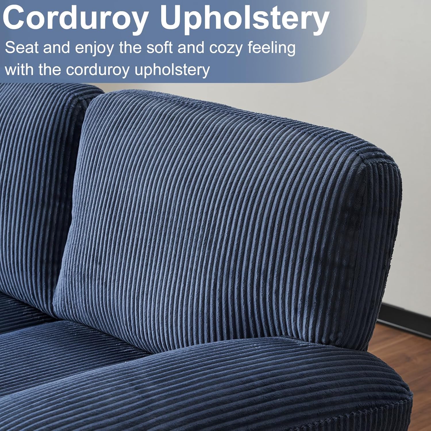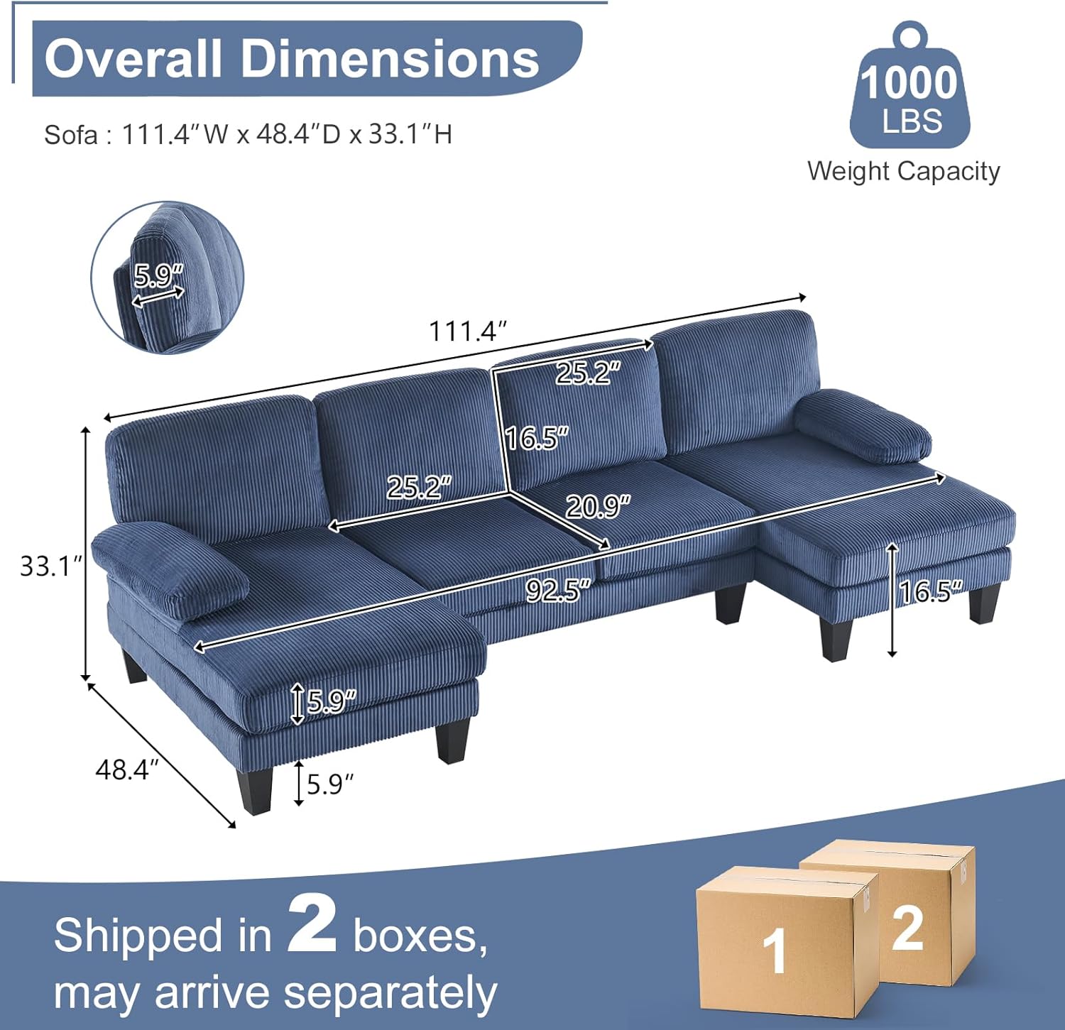 Karl home U-Shape Sectional Sofa Couch 111" Modern 4-Seat Sofa with Chaises Corduroy Fabric Upholstered Covertible Couch with Wood Grain Legs for Living Room, Reception Room, Apartment, Navy Blue