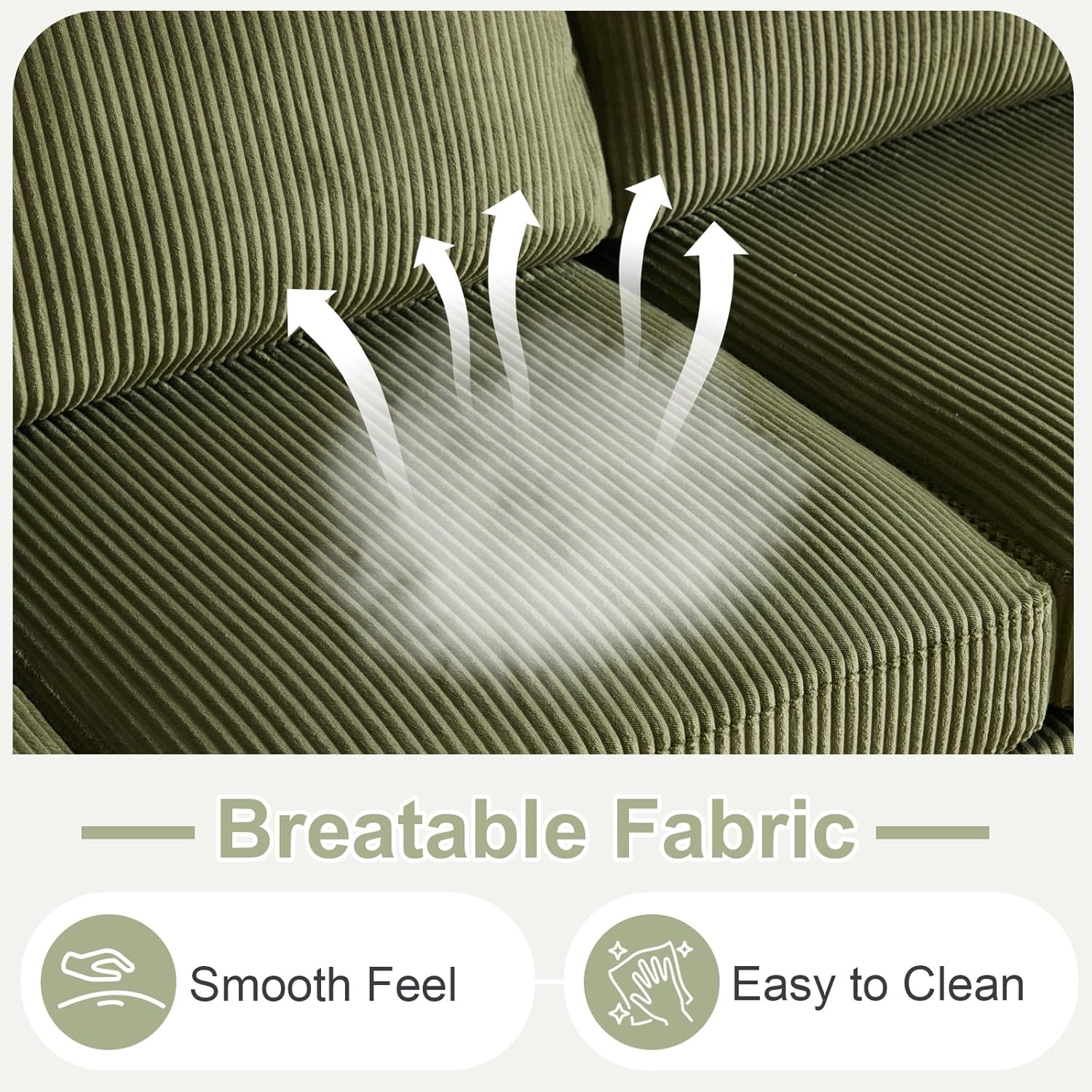 Karl home U-Shape Sectional Sofa Couch 111" Modern 4-Seat Sofa with Chaises Corduroy Fabric Upholstered Covertible Couch with Wood Grain Legs for Living Room, Reception Room, Apartment, Green