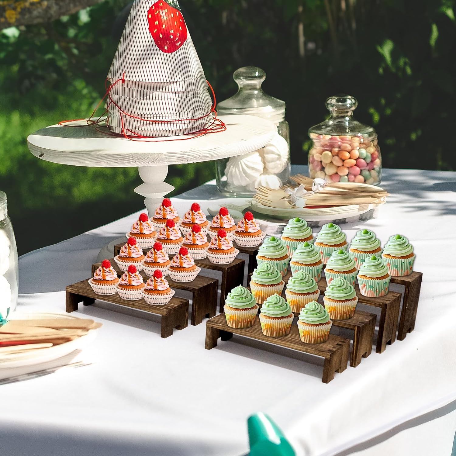 - 【Excellent Gift for Man/Woman】🎁:This 4 tierd 2pack of 8 pieces wooden cupcake display stands suit for festivals, birthdays, party,exhibition or other important days such as Father’s Day, Mother’s Day or Christmas Day!The dessert wood risers are 100% solid wood,so they can be as table display stand for vendors event gifts for your relatives or friends of man or woman and used everywhere.