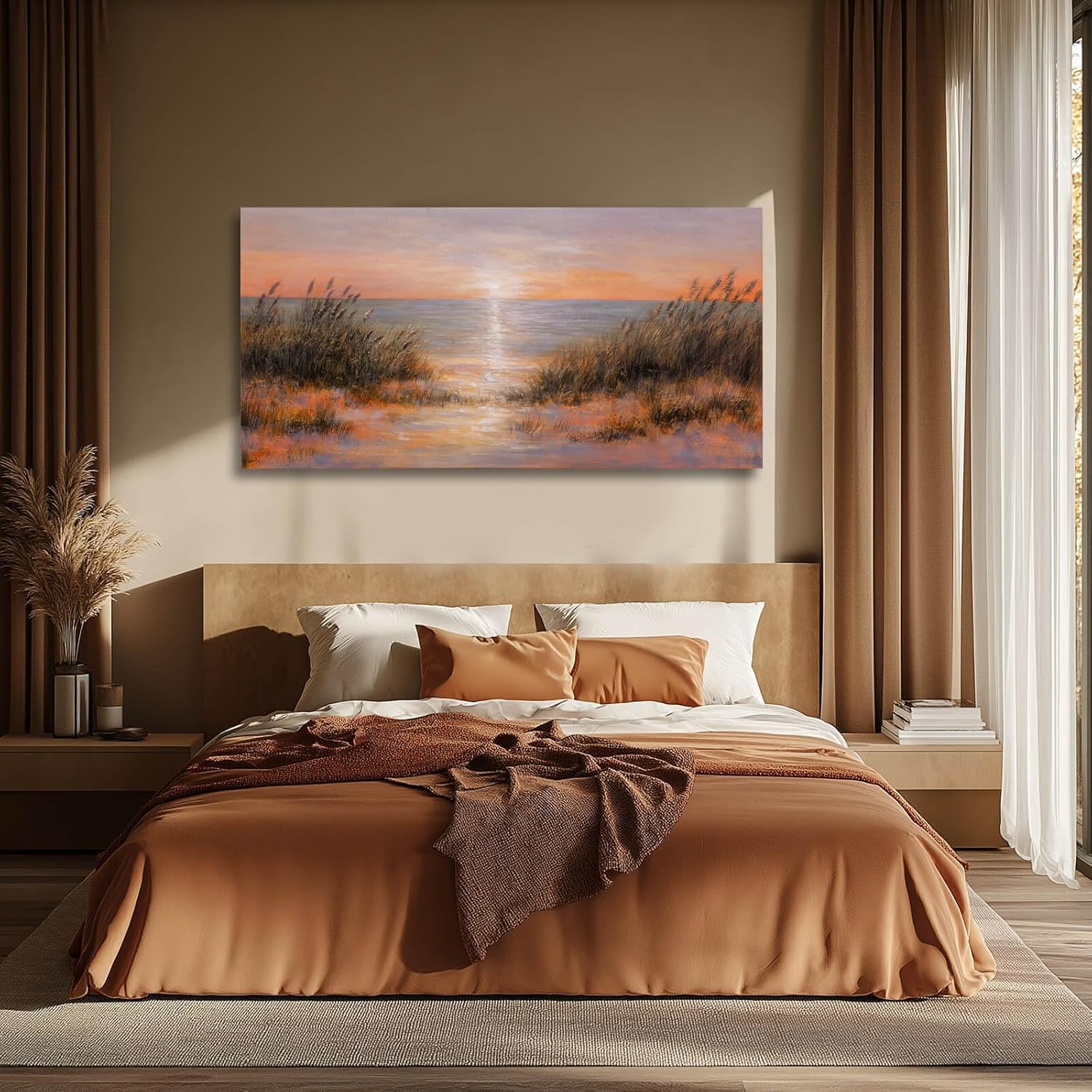 Coastal Wall Art Colorful Scenery Artwork Orange Sunset Wall Decorations for Living Room 24"x48" Nature Photo Prints for Bedroom Dining Room