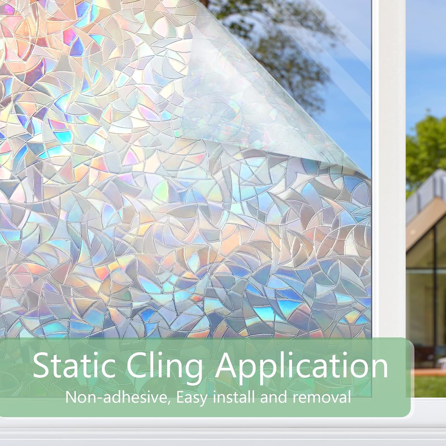HIDBEA Window Privacy Film Static Clings, Rainbow Window Film, 3D Decals Non-Adhesive Window Vinyl Film for Home Door, 23.6 Inch x 13.1 Feet