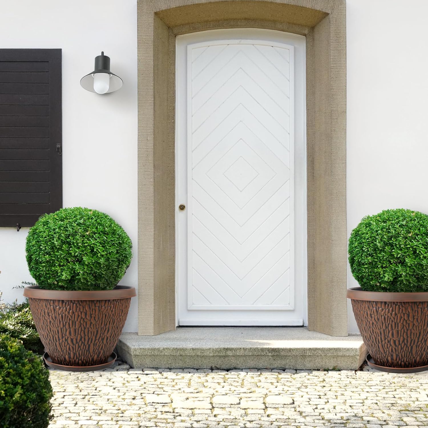 - 【Thicker/More Weather Resistant】Nooulap flower pots are made of sturdy recyclable plastic. Allow you to enjoy these plastic planters for outdoor plants in all types of weather. Built to withstand intense sun and harsh winter temperatures, free from fade, frost, crack and peel damage so you can use it indoors and outdoors freely.