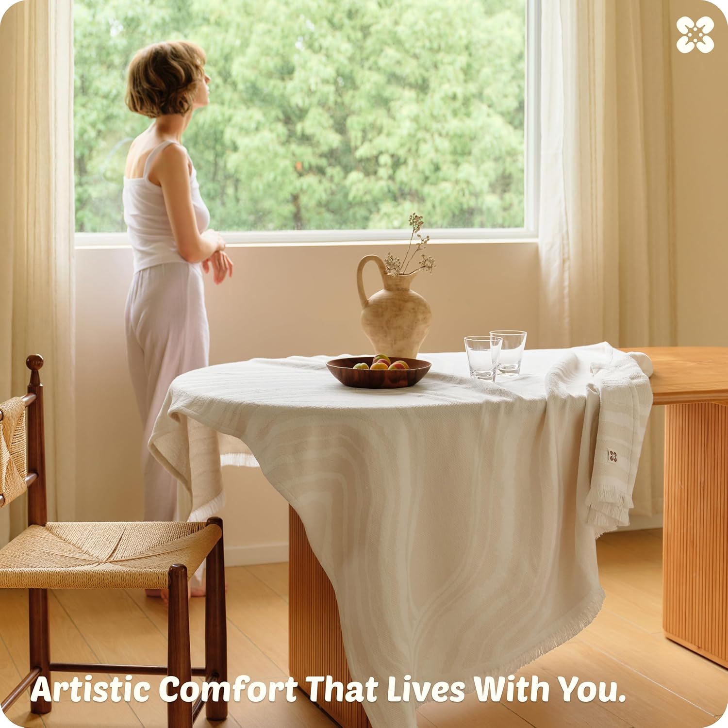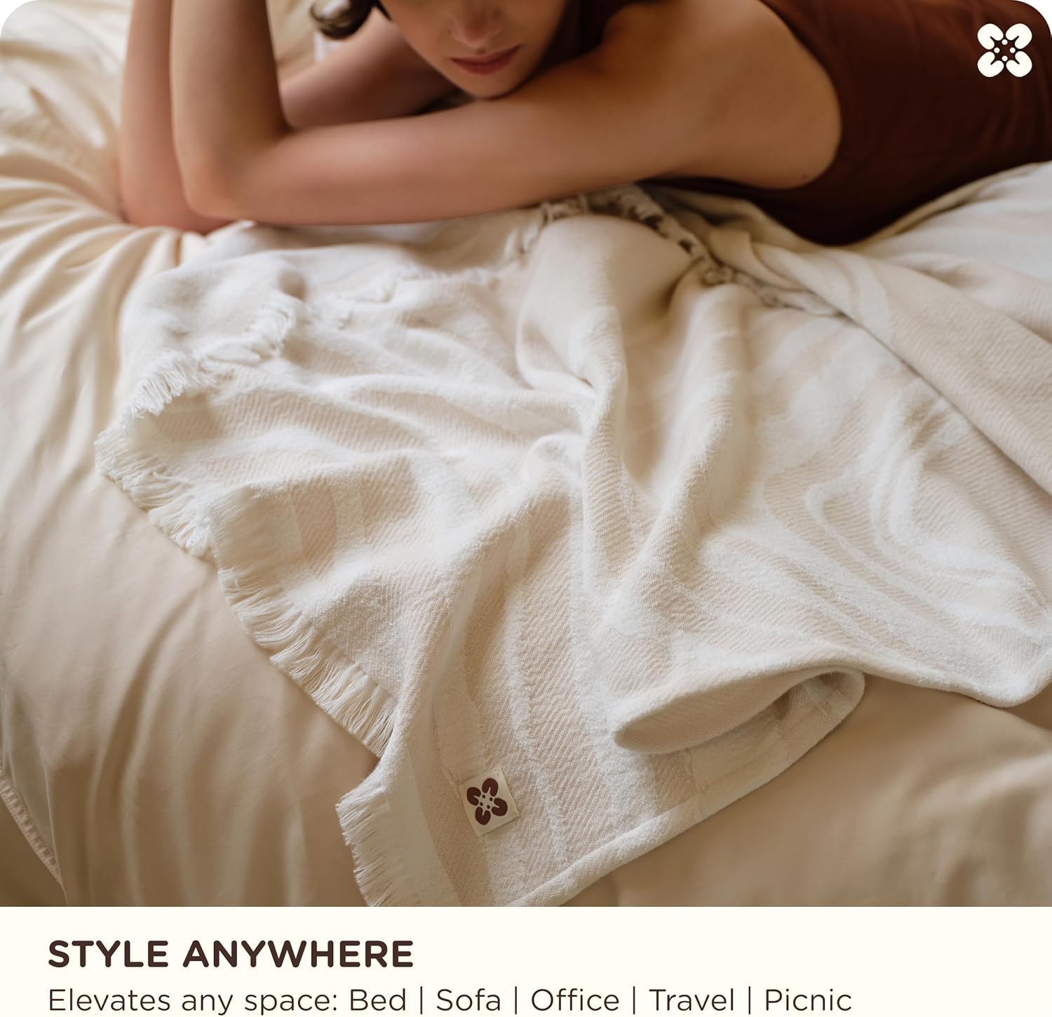 Bedsure 100% Cotton Throw Blanket for Couch - Chenille Woven Textured Blanket Gifts for Women, Cozy and Soft for All Seasons, Home Decor Boho Throw for Bed, Sofa, Oat Milk, 50x60 Inches