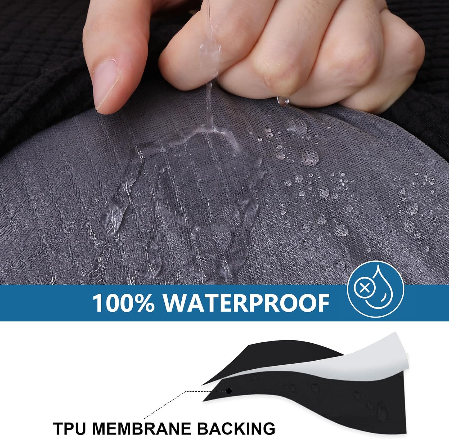 - [100% Waterproof Fabric] The back of the couch seat cover has a waterproof layer made of TPU. Great on against spills, pets' fur, stains, and normal wear and tear or any possible mess and accidents.