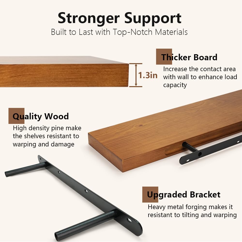 - Farmhouse Wood Shelf: After polishing and varnishing, the shelves are enhanced for durability with anti-moisture and anti-heat properties while preserving the natural grain and knots of the pine wood. Adorn your home in style