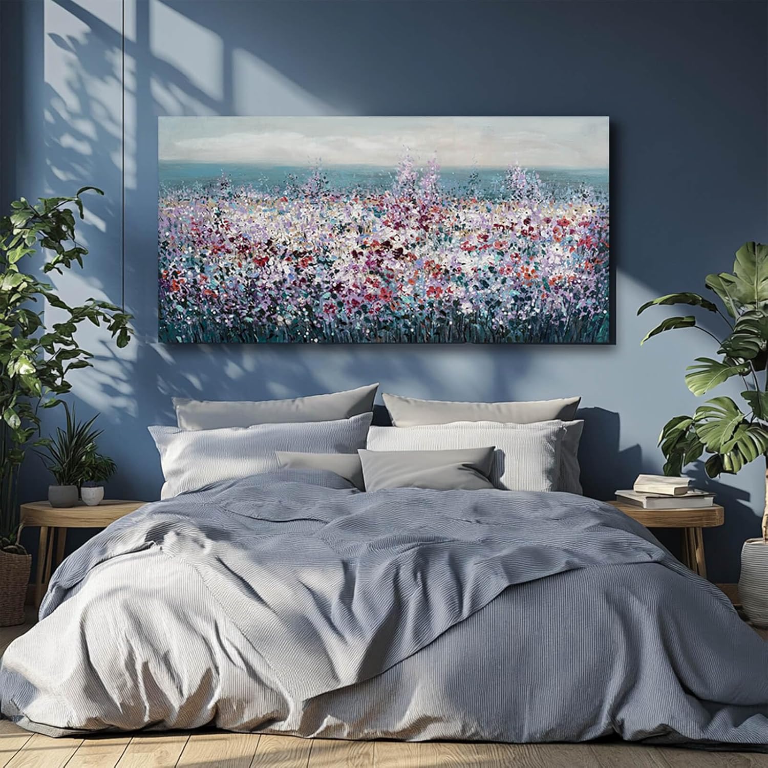 CHUDANHAO Blue Coastal Wall Art Colorful Wall Decor Flowers Canvas Prints for Office 29x58 Inch Large Landscape Painting for Living Room Bedroom