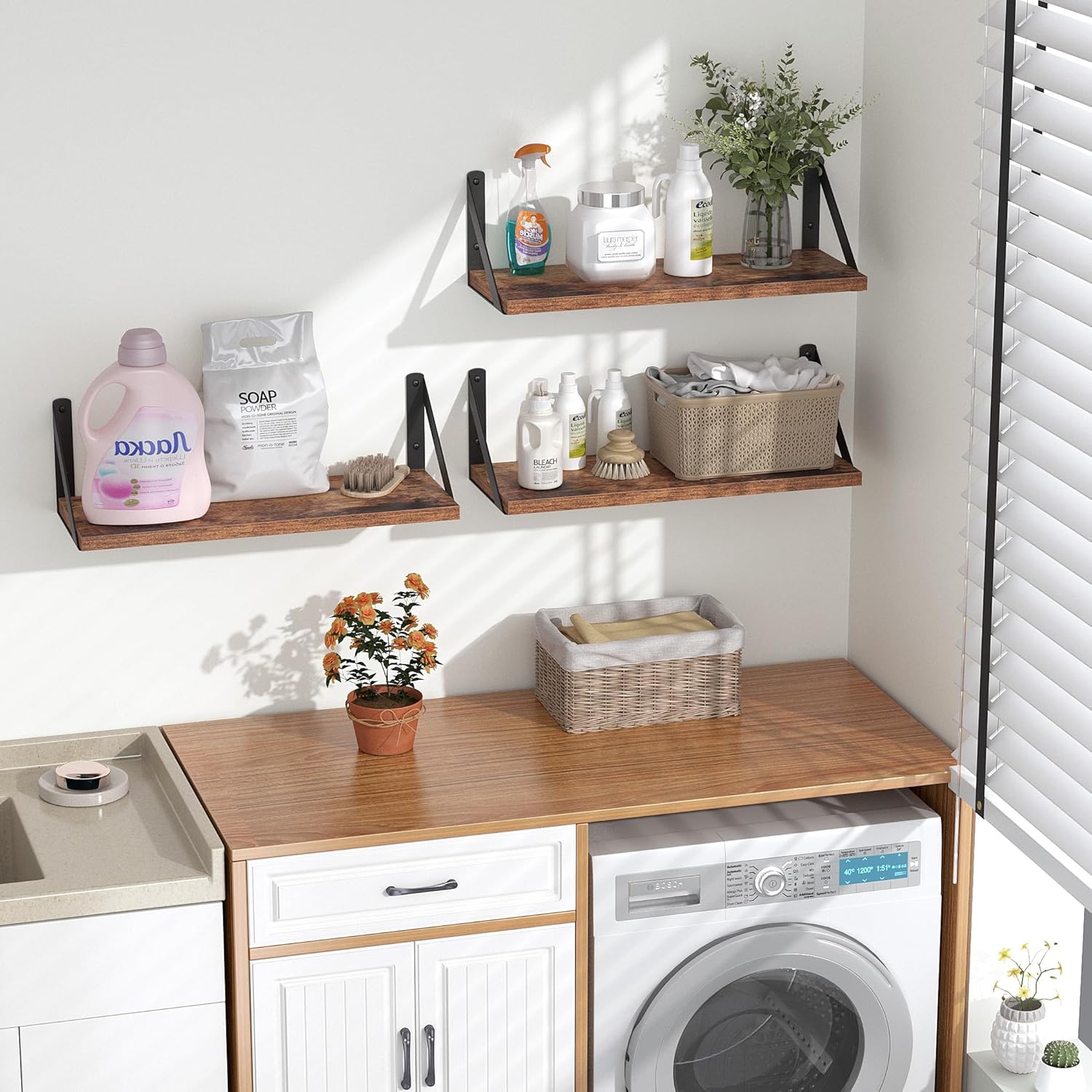 - ăELEGANT STYLING DESIGNăHigh quality rustic floating wood shelves reflects a vintage elegance that meets both your decorative and organizational needs. It complements the warm home style design and shows off a distinctive taste