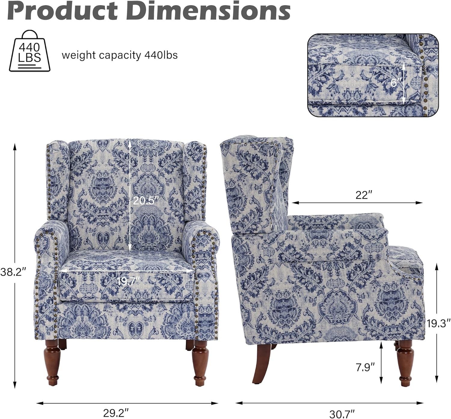 - Attractive Printed Pattern Chair - This armchair features nailhead trim, rolled armrests, vintage wooden legs and a beautiful patterned design for a traditional and chic look. Ideal for waiting room, living room, bedroom, dressing room, dressing room, office, reception room.