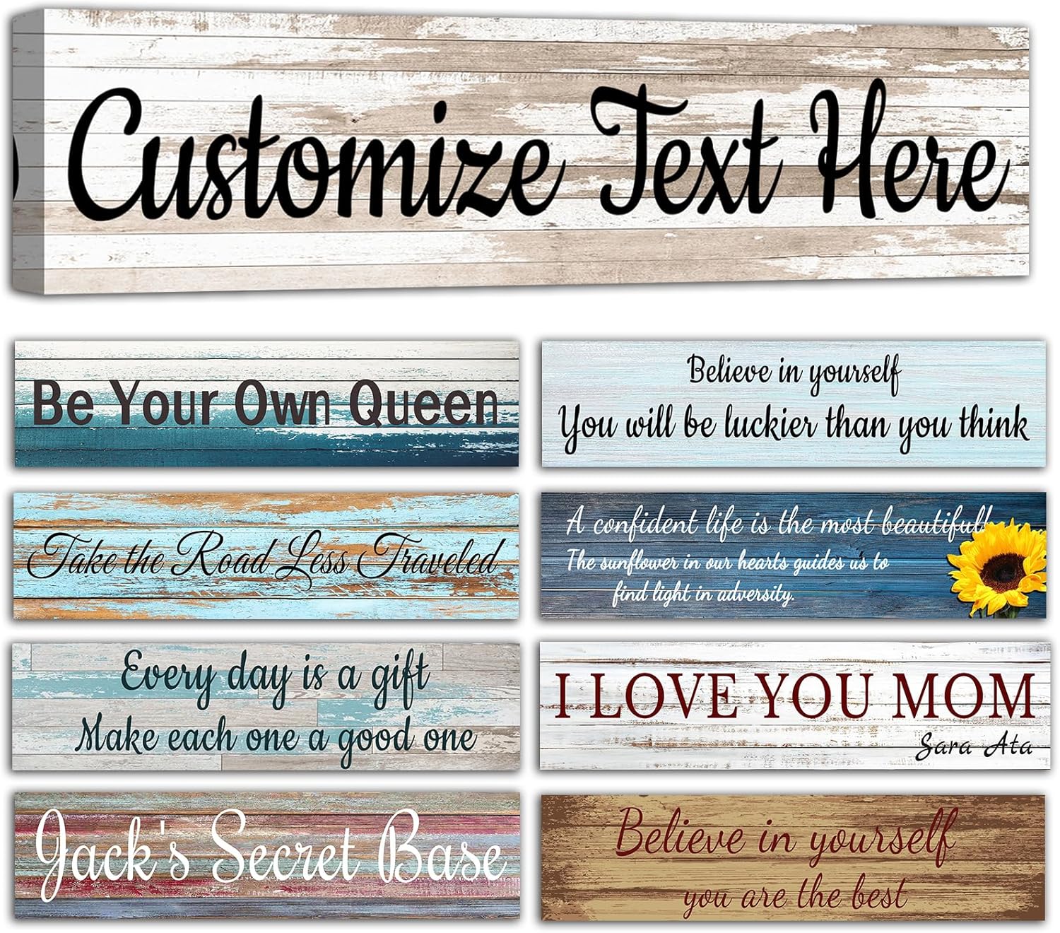 - High Quality Canvas -- Custom text signs wall art are made from high-quality canvas with crisp images and rich colors that won't fade. All personalized wall signs are tightly wrapped in wooden frames, not easy to deform, and the solid wood frames are also equipped with metal hooks, so you can hang it up immediately after receiving the package.