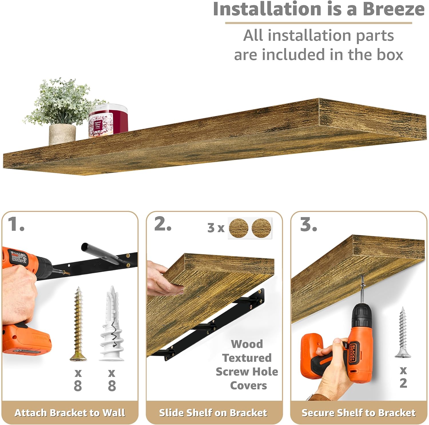 Sorbus Floating Shelves for Wall - 48 Inch Long Bathroom Shelves, Wall Decor for Bedroom, Kitchen, Living Room & Book Storage - Mounted Floating Shelf with Invisible Brackets (Rustic Brown, 2 Pack)