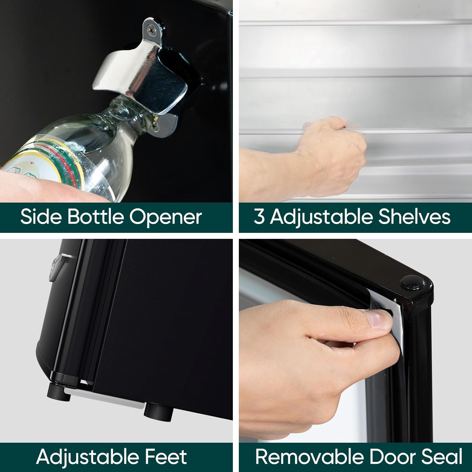 - Retro Design: Featuring a classic exterior with metal handle and side bottle opener, the overall appearance of this retro refrigerator is stylish and high texture. It's not only a practical appliance, but also elevates your home decor